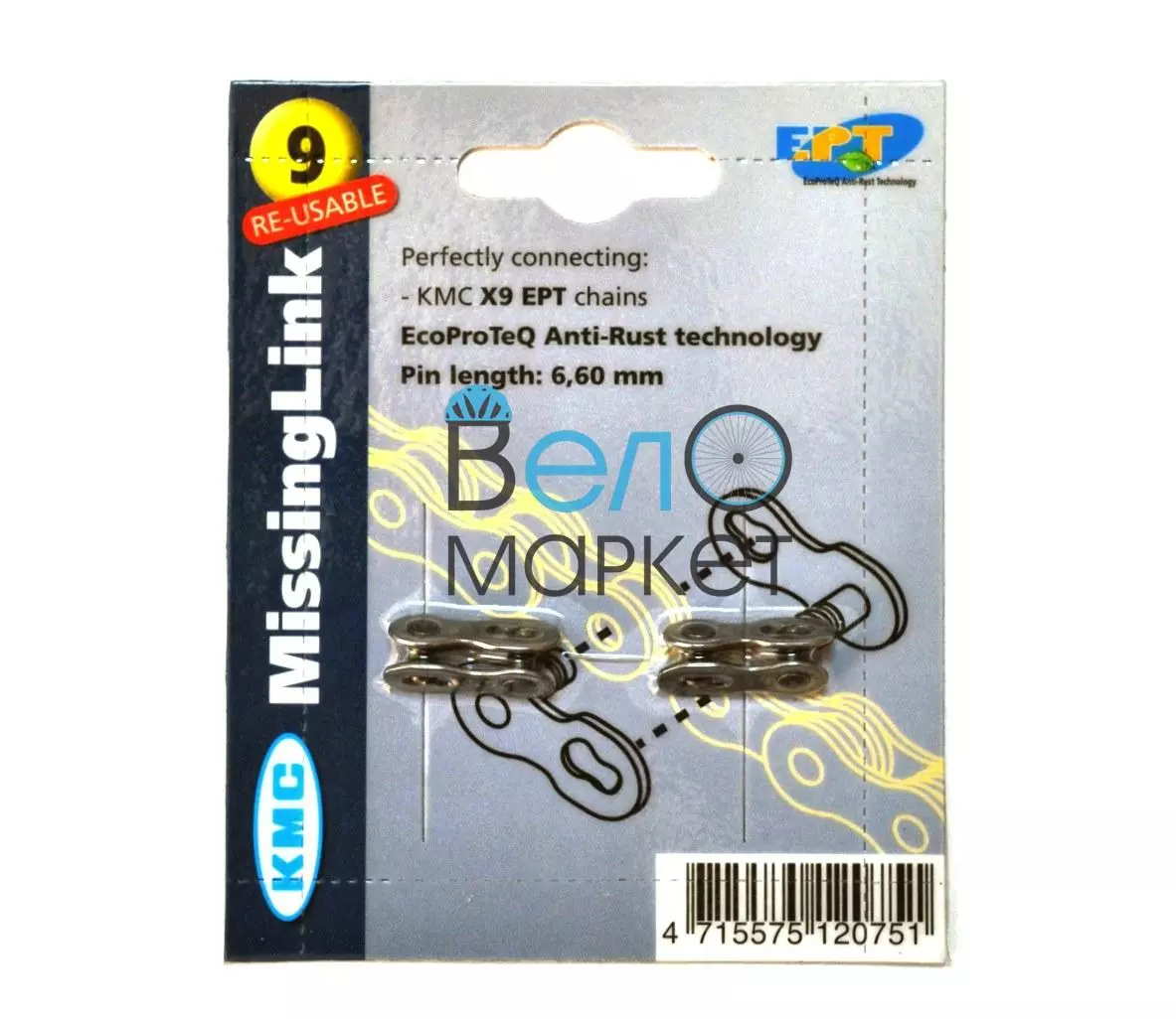 Замок ланцюга KMC CL566R-EPT для 9 швидкісних ланцюгів.