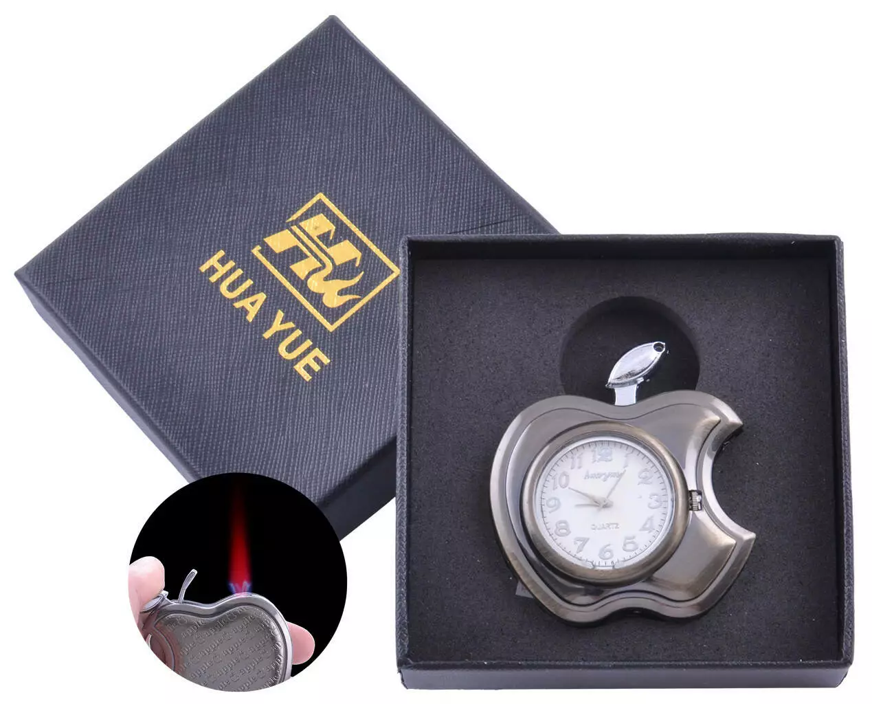 Зажигалка подарочная с часами Apple (Турбо пламя) №3919 Black