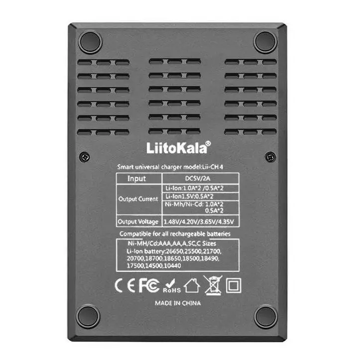 Зарядний пристрій LiitoKala Lii-CH4, 4x26650 /21700 /20700 /18650 /18490 /18350 /17670 /175000 /16340 /14500 /10440 / AA / AAA