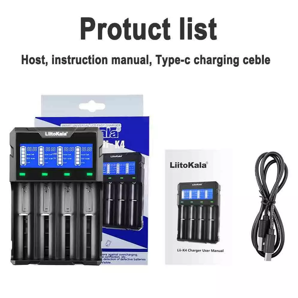 Зарядний пристрій LiitoKala Lii-K4, Power Bank, 18650/ 26650/ 21700/ 26700/ AA
