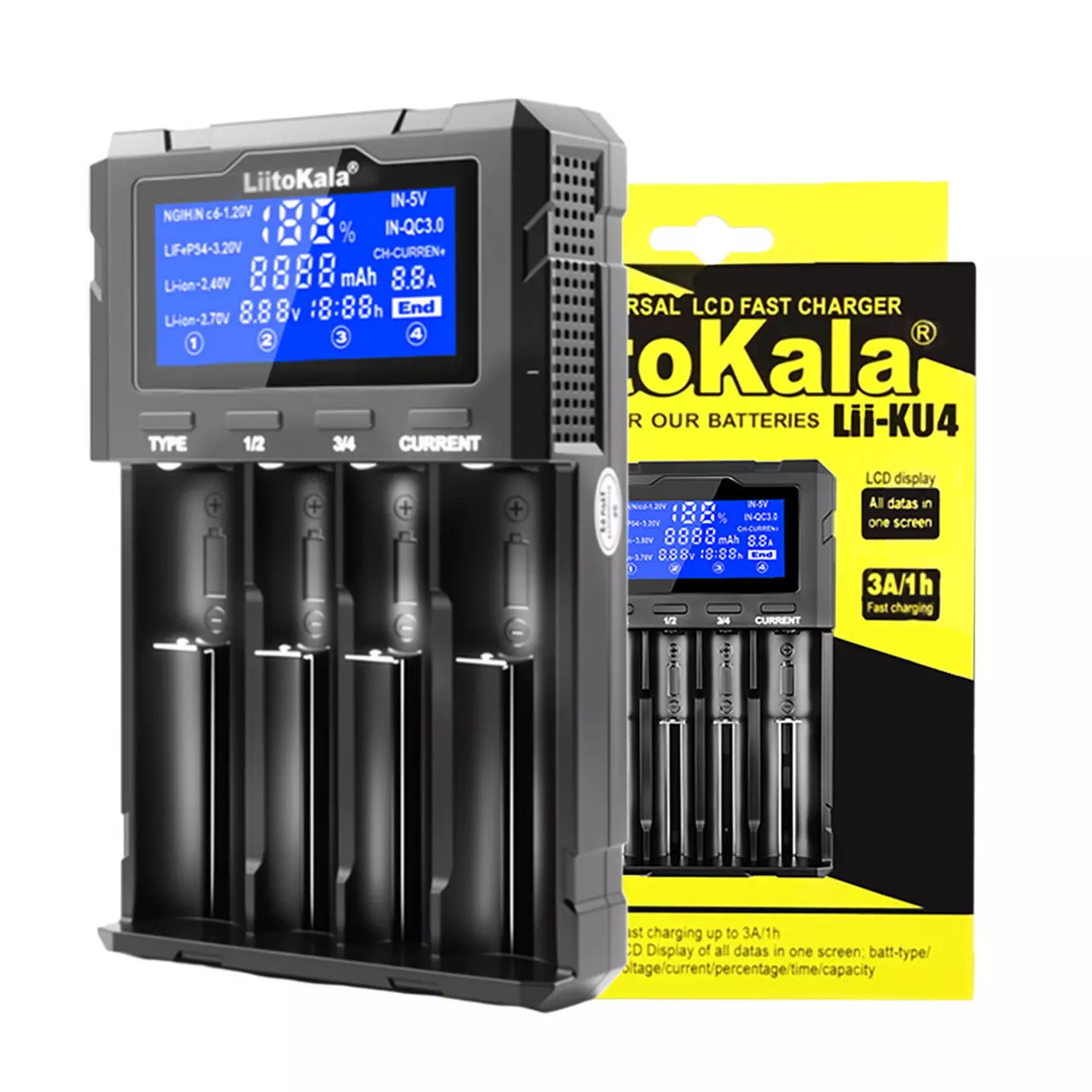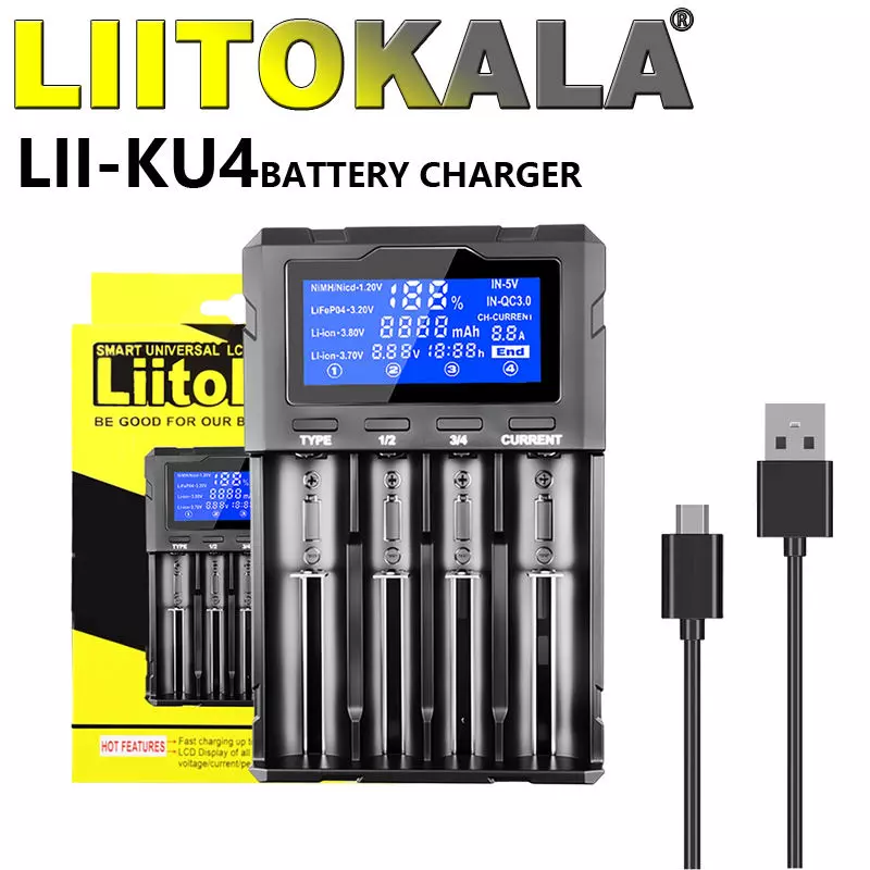 Зарядний пристрій LiitoKala Lii-KU4, 18650/ 26650/ 21700/ 32650/ 20700/ 21700/ 16340