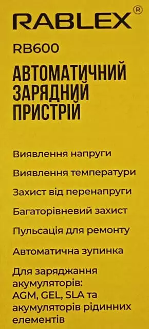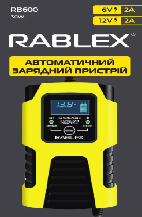 Зарядное устройство Rablex RB600 автоматическое, 30w, 6v-12v, 2A