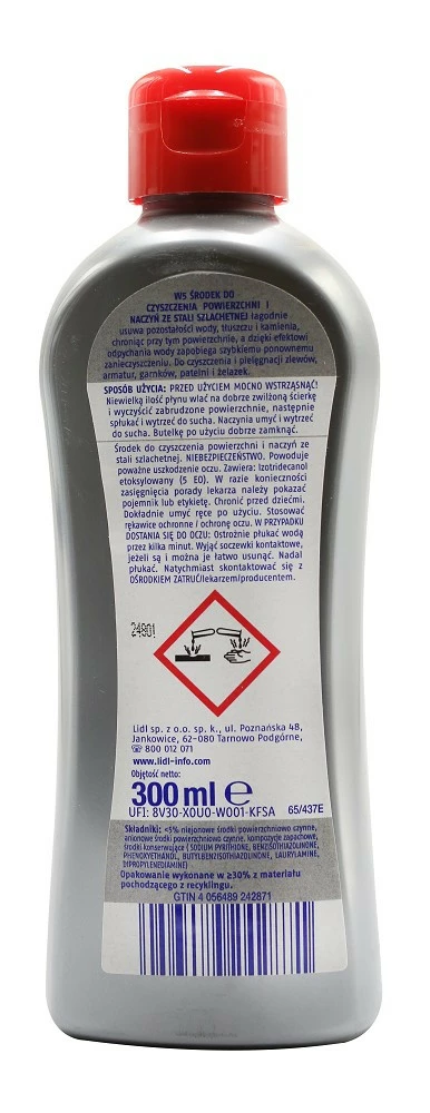 очищає всі поверхні з полірованої неіржавкої сталі, хрому та