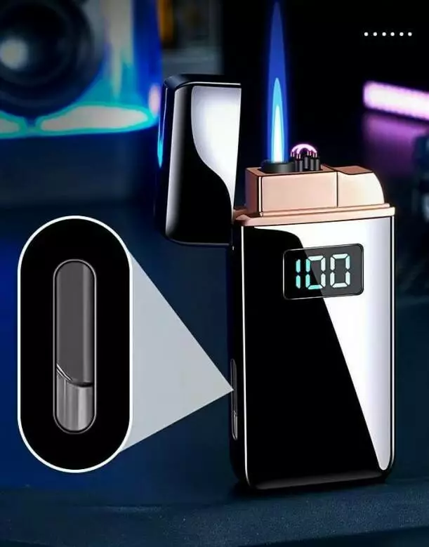 Зажигалка с двойной системой розжига (⚡электродуга и струйное голубое пламя ????) HL-610 Black