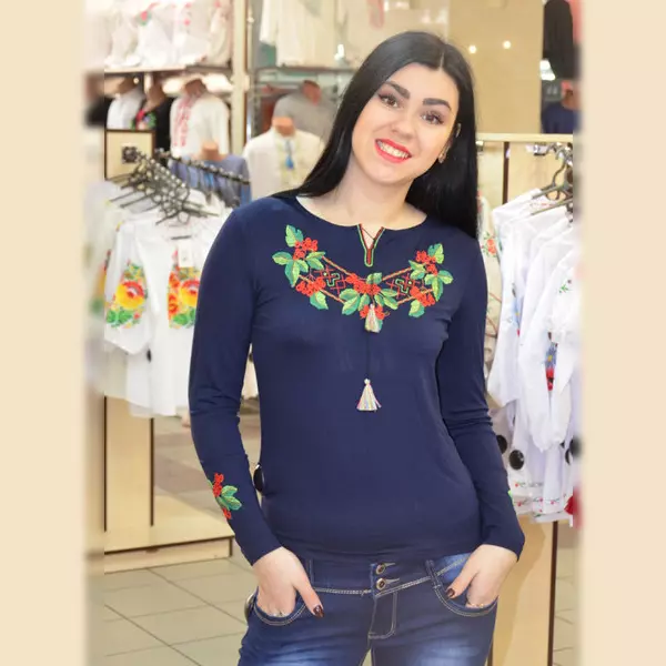 Женская футболка с длинным рукавом, вышита яркими нитями с вышивкой