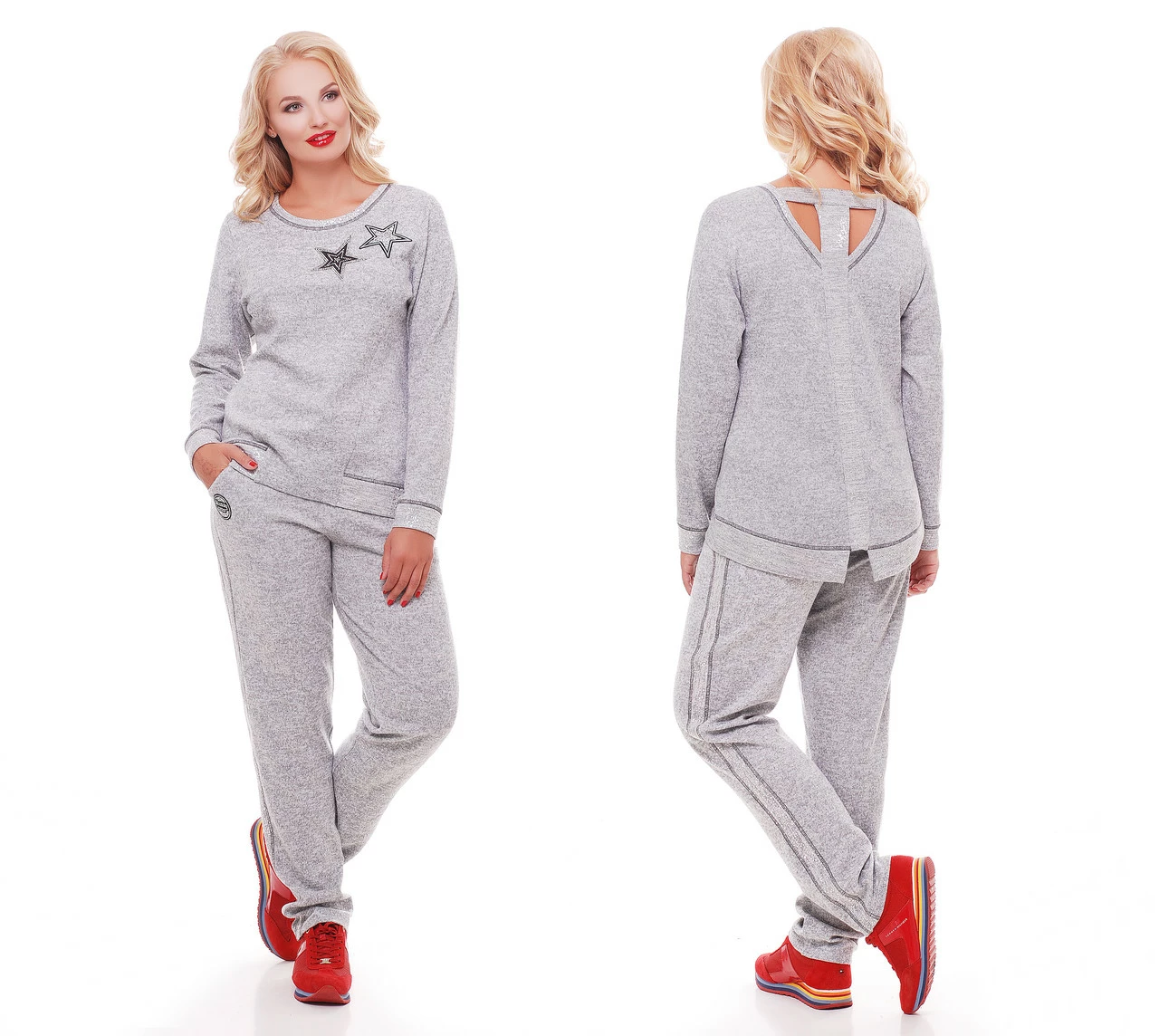 Женский спортивный костюм светло-серый звезды