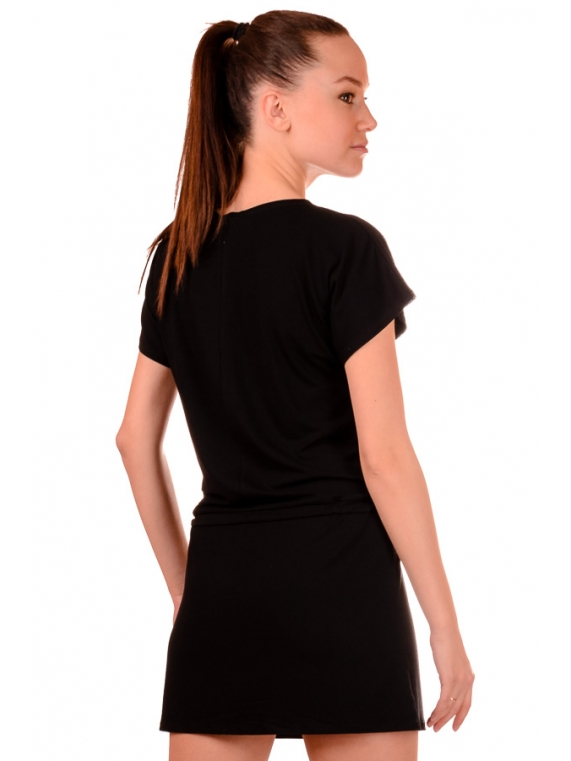 на талии. Полка и юбка изделия украшены термо-принтом высокого