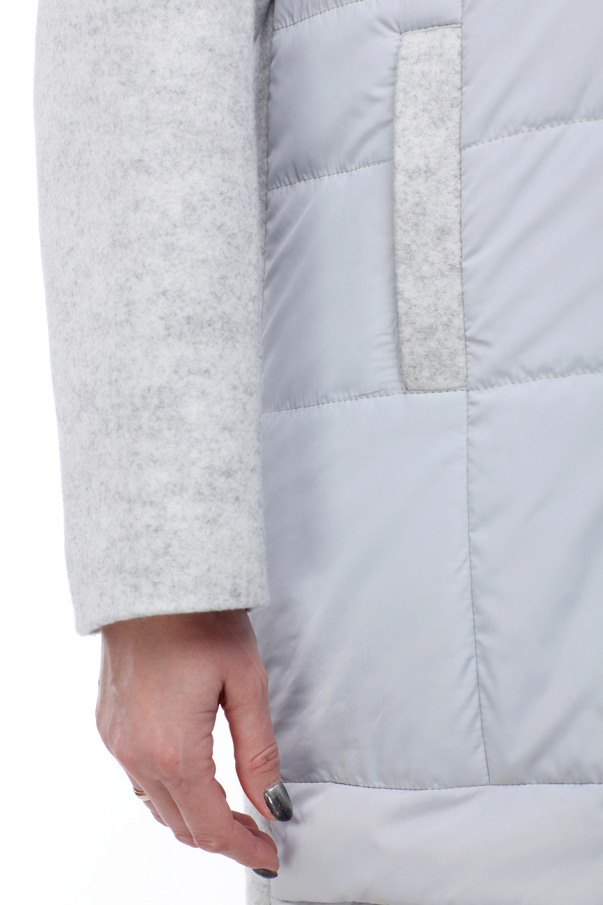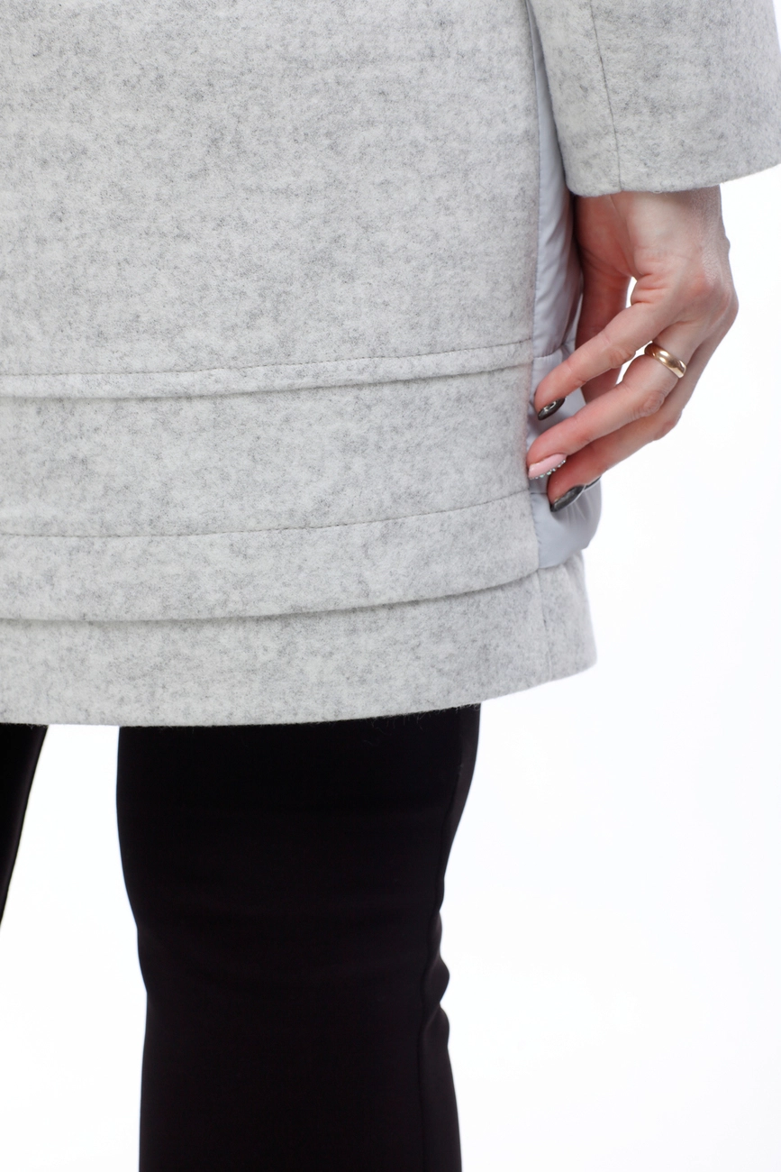 Ультрасовременная комбинированная курточка – последний тренд будущей весны. Свобода движения, многообразие сочетаний с обувью и аксессуарами позволит своей обладательнице быть на вершине каждый день, удивлять, восхищать и очаровывать. Модное сочетание двух видов ткани в одной модели: рукава, спинка и воротник изделия из шерсти, передняя полочка и отстегивающийся капюшон из оригинально простроченной плащевки. Модель прямого кроя, многоступенчатый низ. Застежка по центру изделия и карман-листочка на молнии.