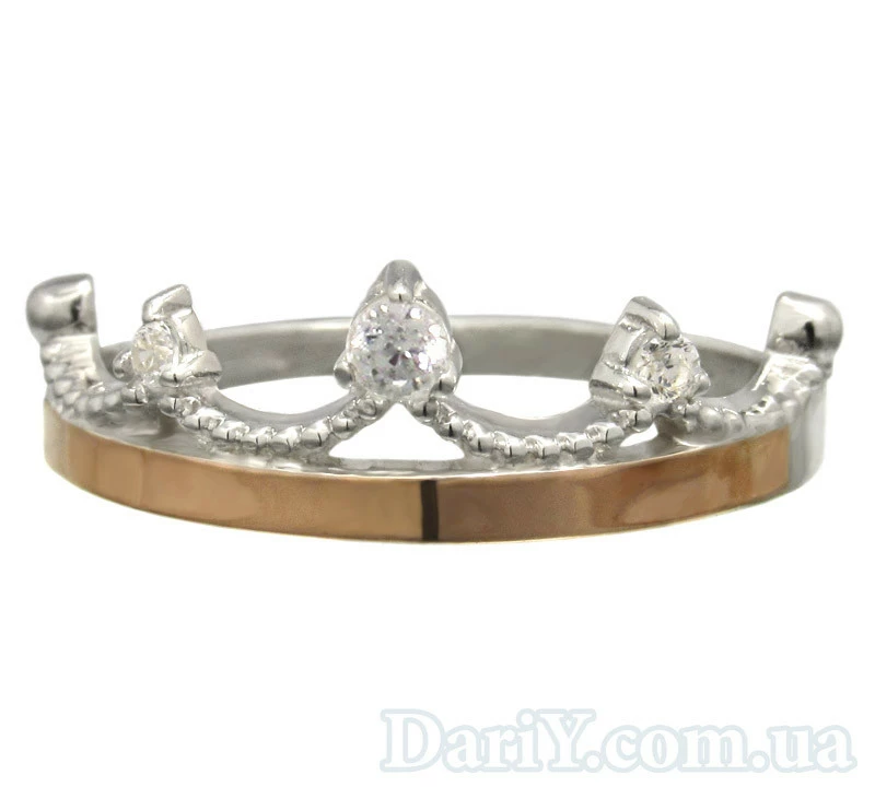 Серебряный кольцо корона с золотой пластиной "Волшебство"