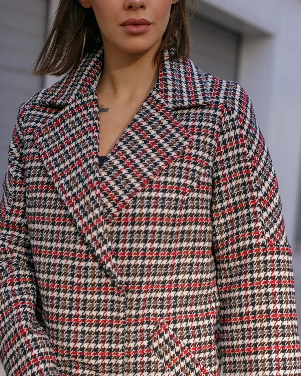 Укороченное пальто прямого силуэта с опущенной линией плеча.