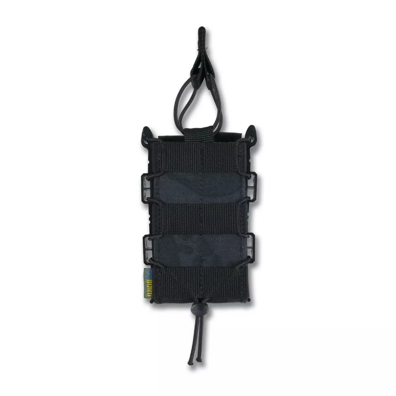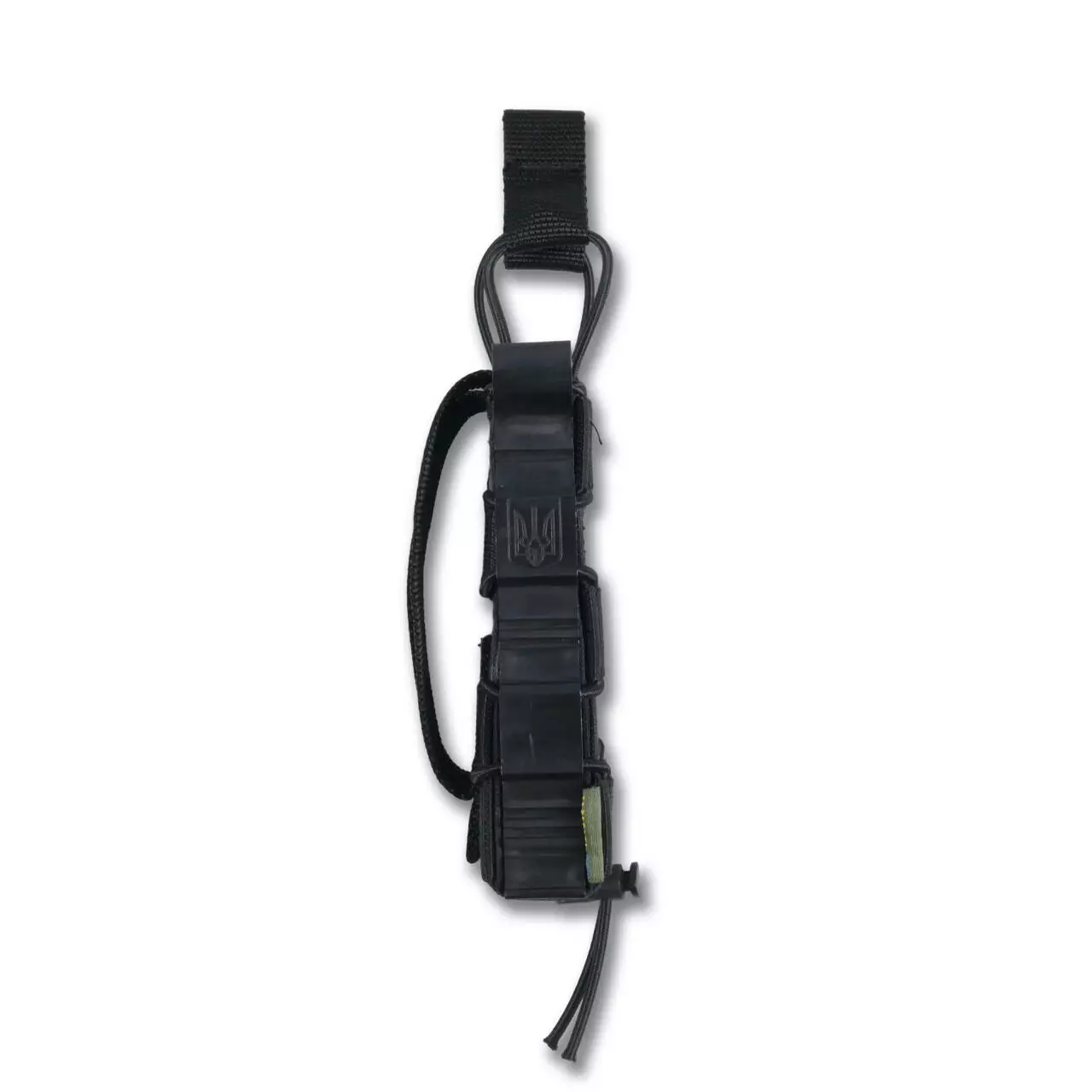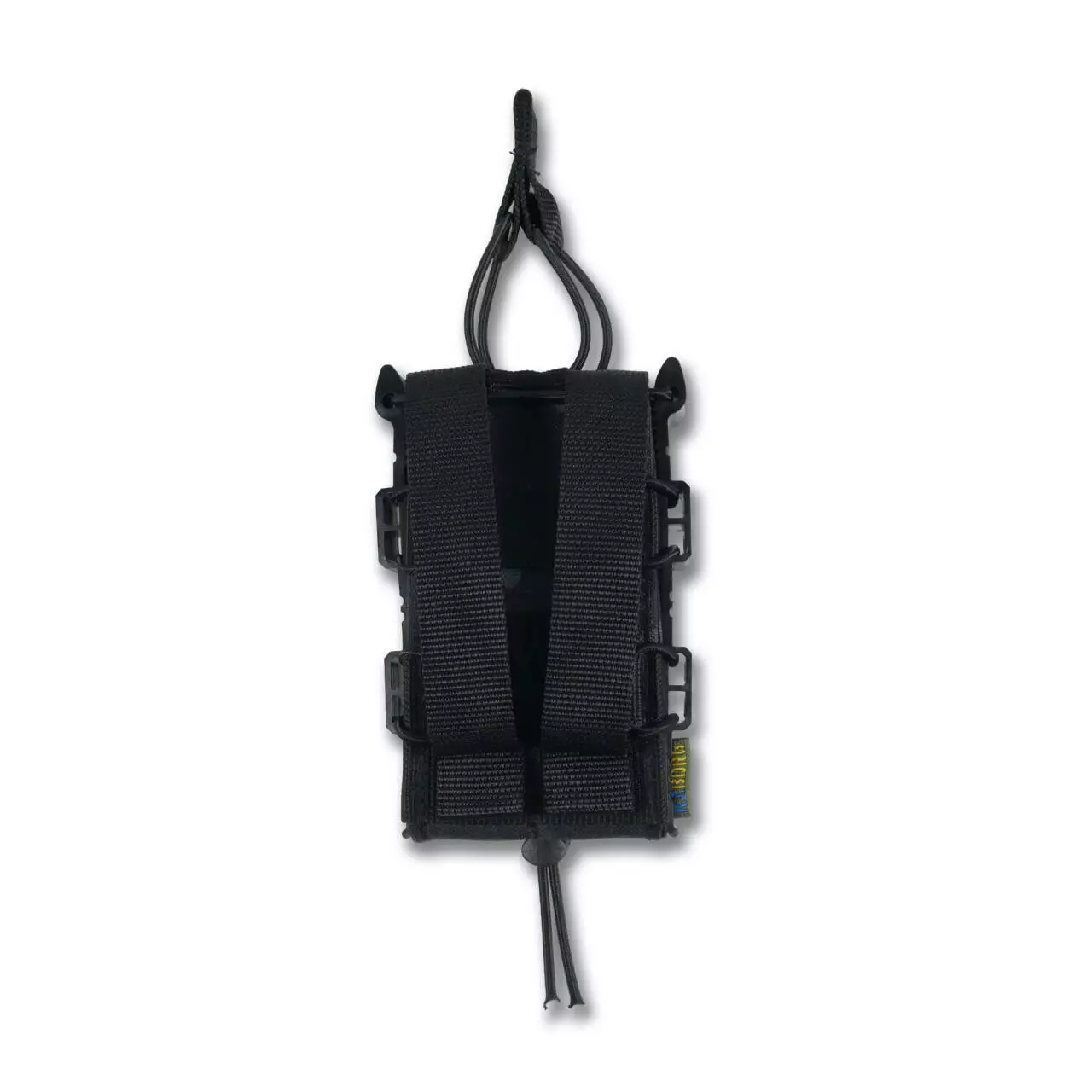 Сила сжатия магазина регулируется шнурком-резинкой с качественным фиксатором, которым стянут подсумок. Сверху есть дополнительный фиксатор на резинке, который при необходимости можно снять.