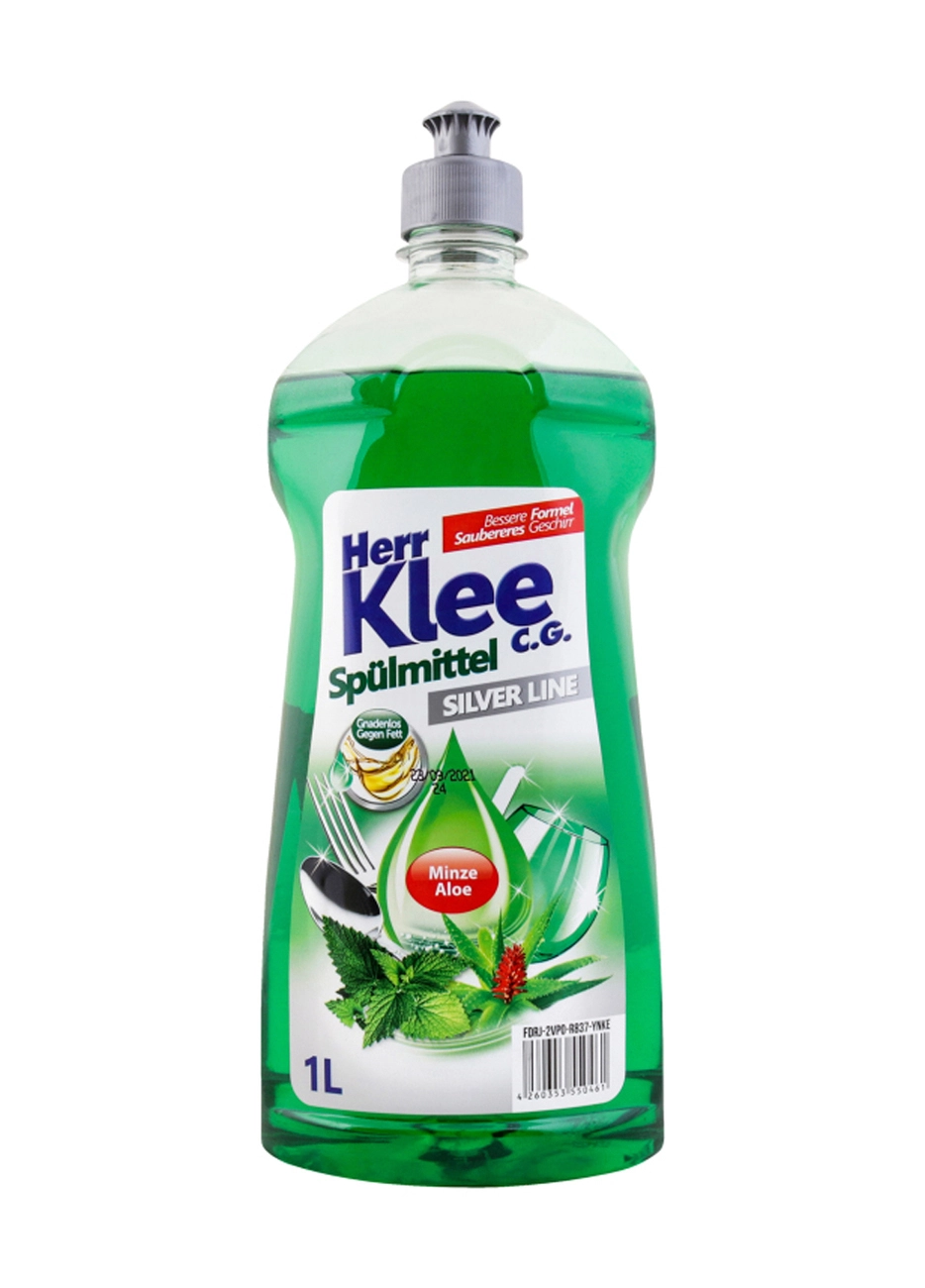 Жидкость для мытья посуды Herr Klee Мята и алоэ помогает удалить грязь, жир и остатки пищи из посуды и столовых приборов.