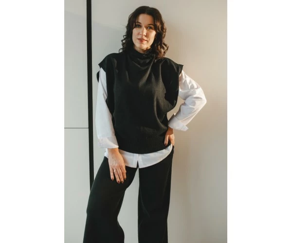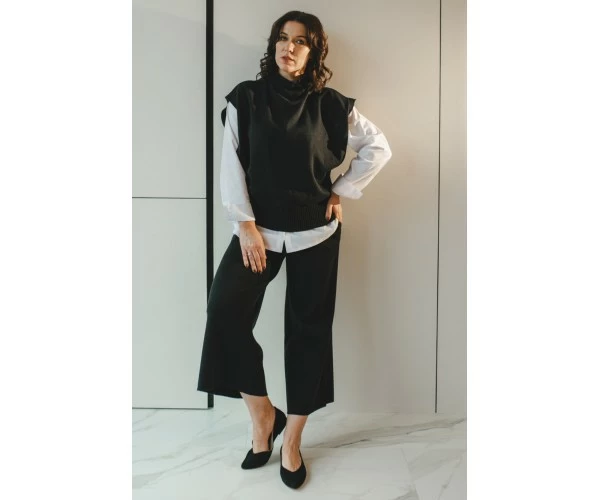 Стильный и практичный жилет, идеален для теплого времени года. Подойдет к юбке, брюкам, кюлотам и джинсам.