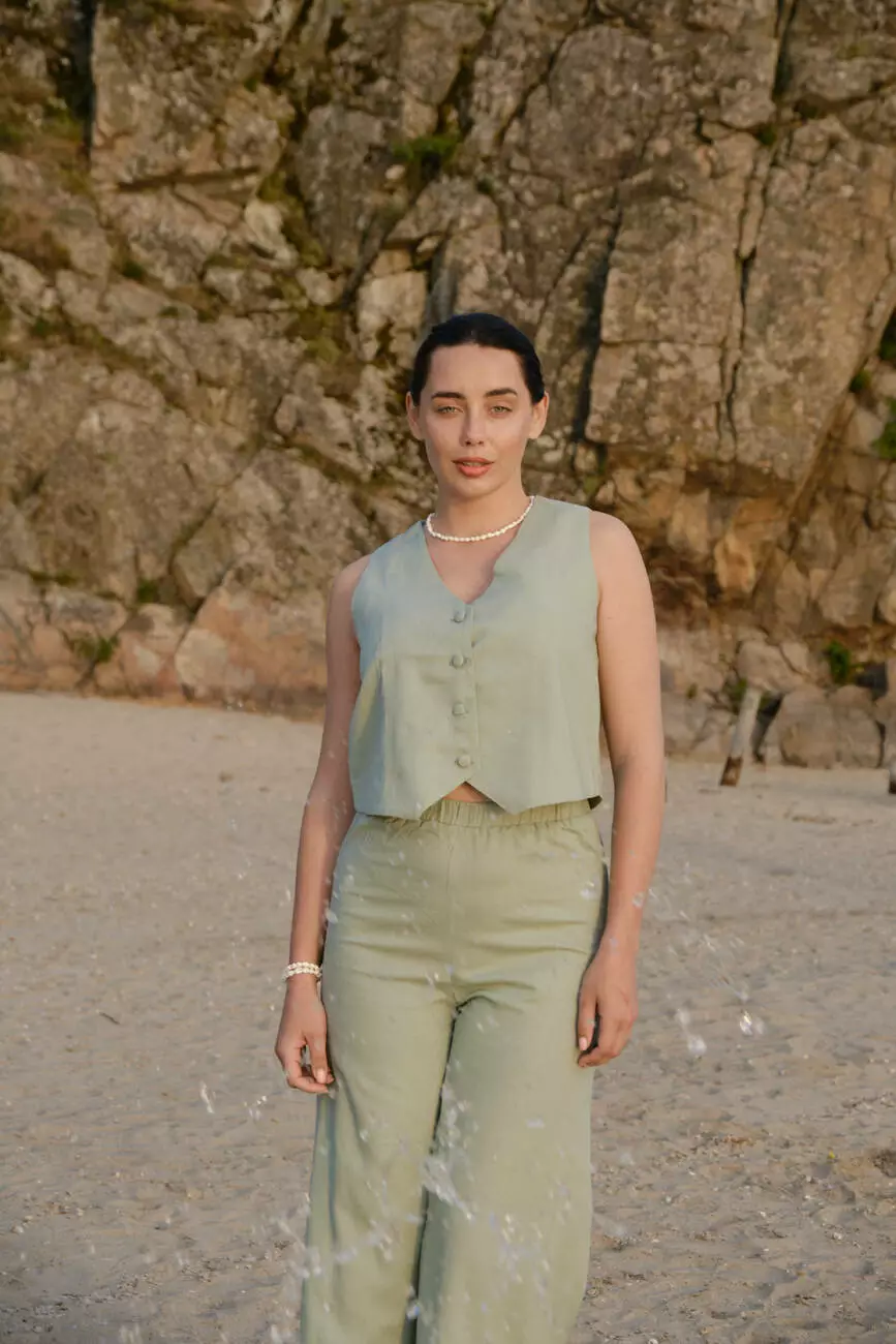 Стильний жилет, виготовлений з льону фісташкового кольору.