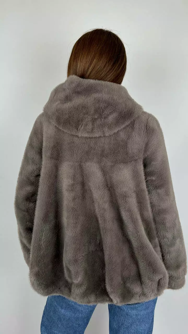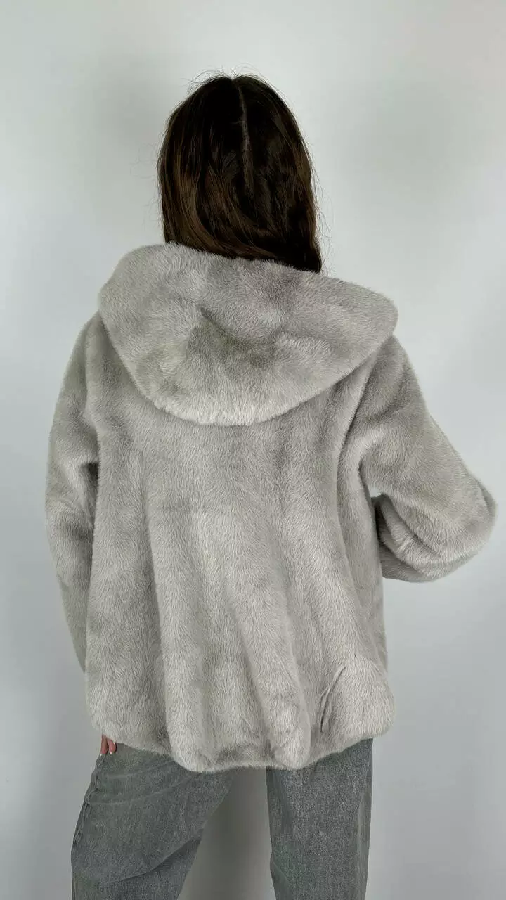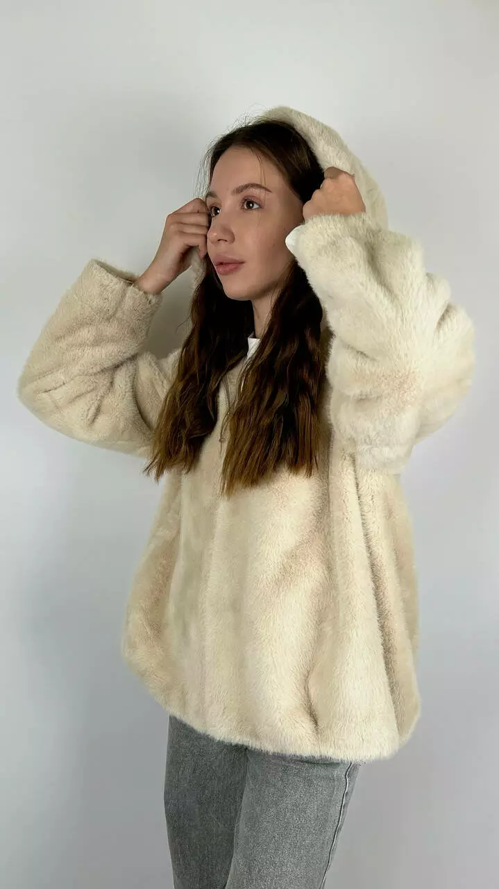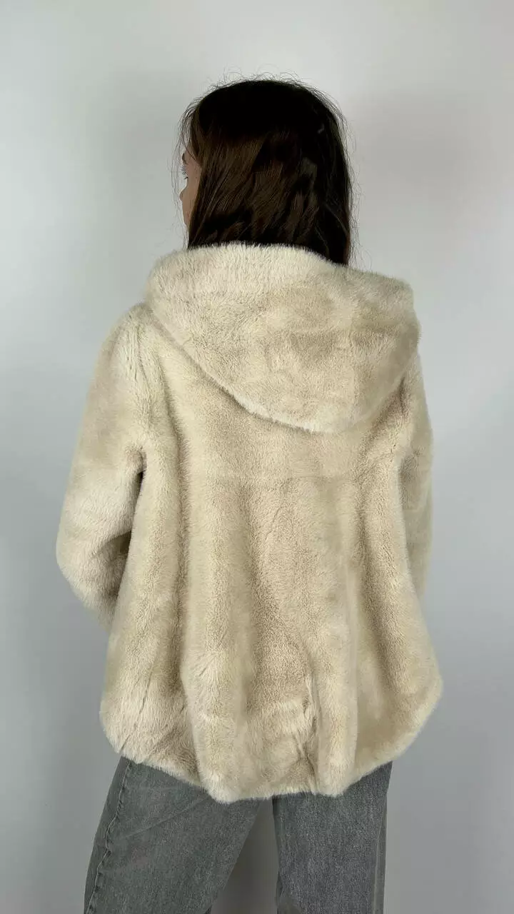 Жіноча еко-шубка з капюшоном