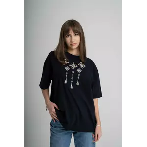 Оверсайз футболки це передусім про зручність та комфорт. Саме тому дизайнери MELANIKA, розробили модель жіночої футболки чорного кольору з геометричним візерунком.