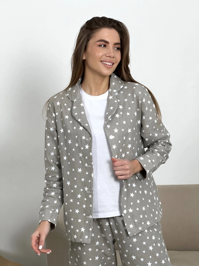 Колір: білі зірочки, сірий фон з бежевим відтінком.