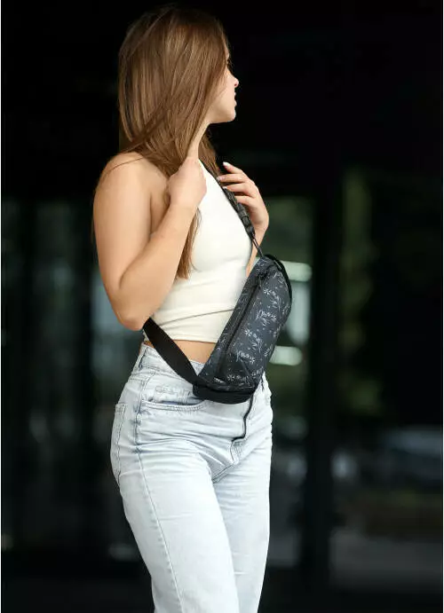 Жіноча сумка на пояс бананка Sambag Holster MSH чорний принт тканева