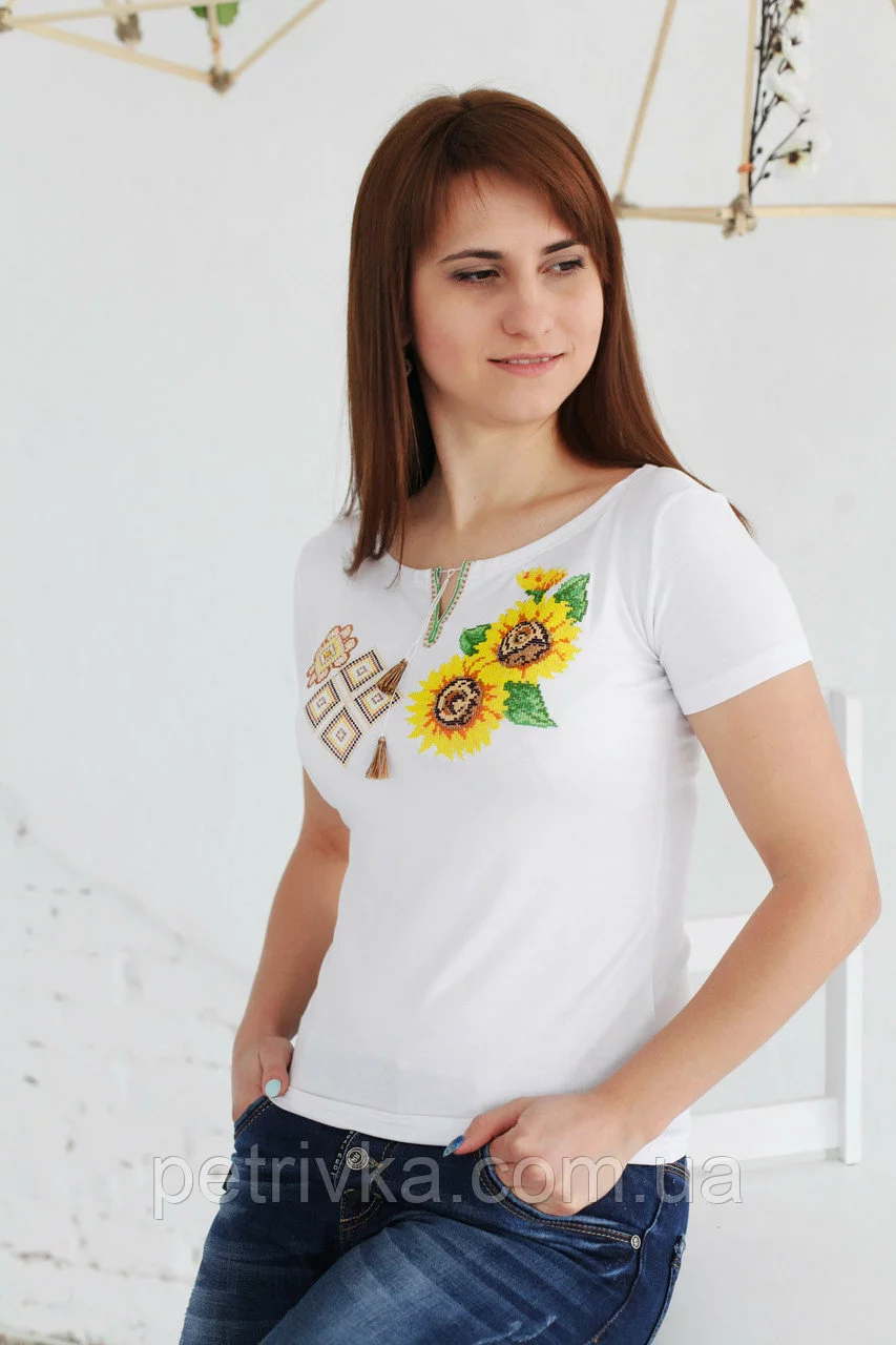 Жіноча вишита футболка поєднання А-18