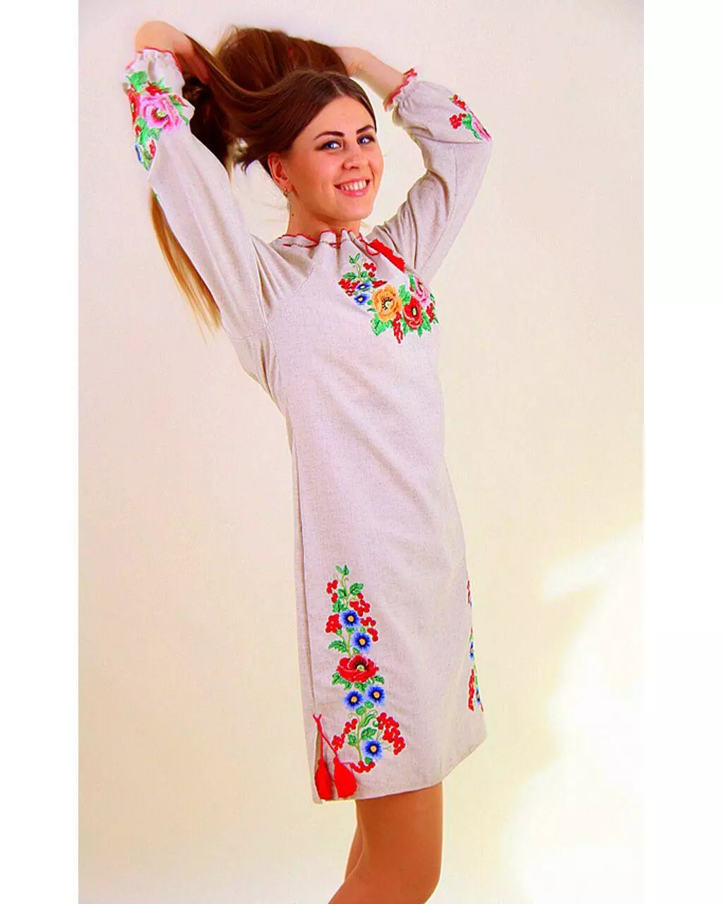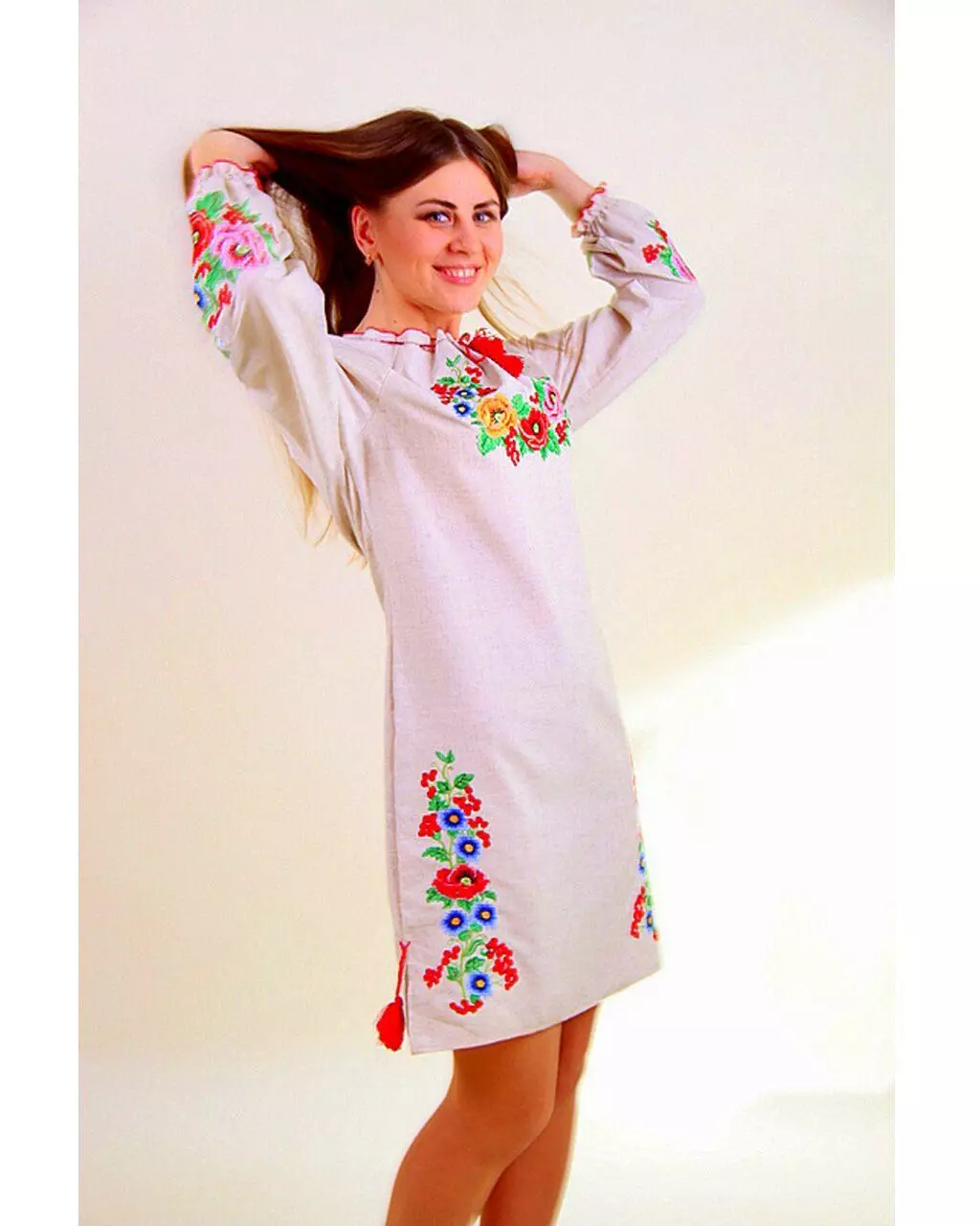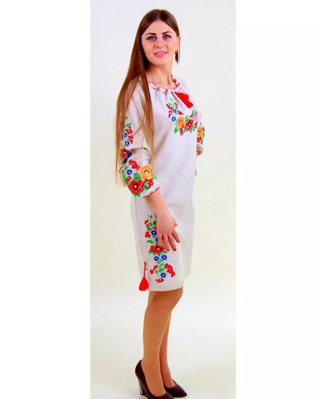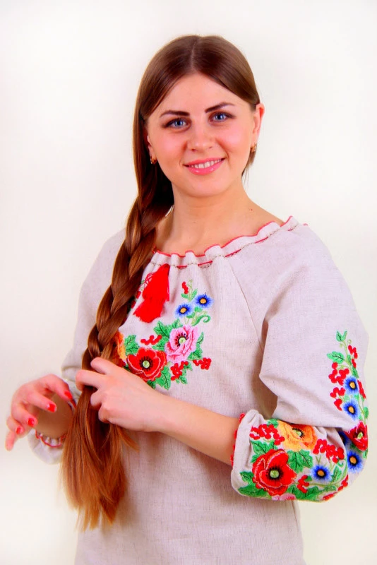 Вишукана вишиванка "Діана" з довгим рукавчиків на гумці. Вишита спеціальними якісними нитками, які призначені забезпечувати яскравість і стійкість вишивки при постійному використанні, а гладьевый візерунок з плавними переходами кольору не залишить байдужою жодну дівчину! Дуже ніжно виглядають разом маки, калина і волошки в соковито-зелених листках!