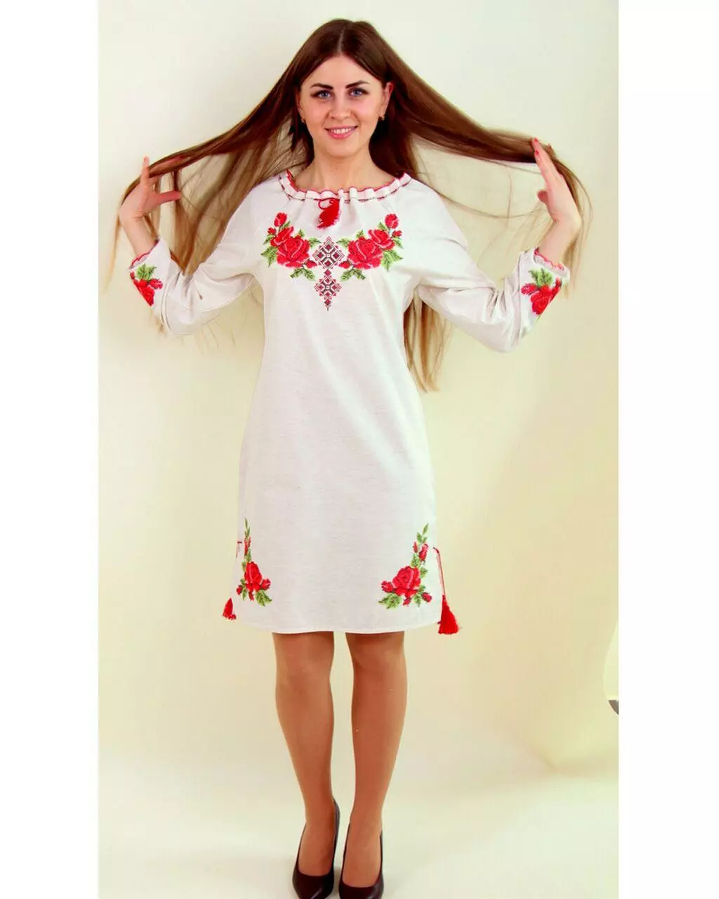 Вишукана вишиванка "Зоряна" з довгим рукавом на гумці. Вишита спеціальними якісними нитками, які призначені забезпечувати яскравість і стійкість вишивки при постійному використанні. Дуже ніжне поєднання пишних троянд і геометричного візерунка!