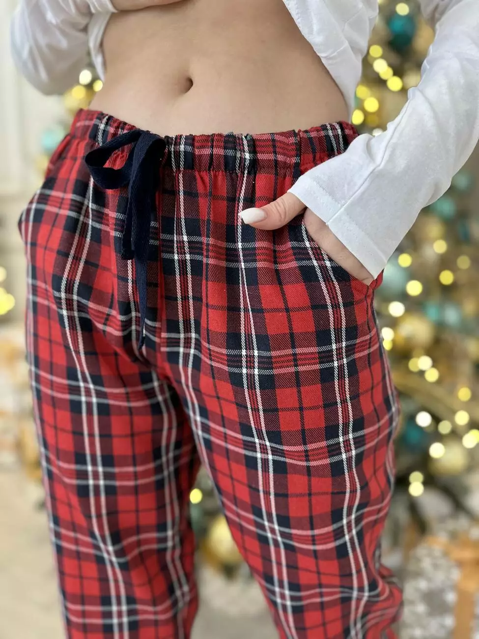 Комфортні фланелеві штани із кишенями, з манжетом. Пояс на резинці з регульованою куліскою.