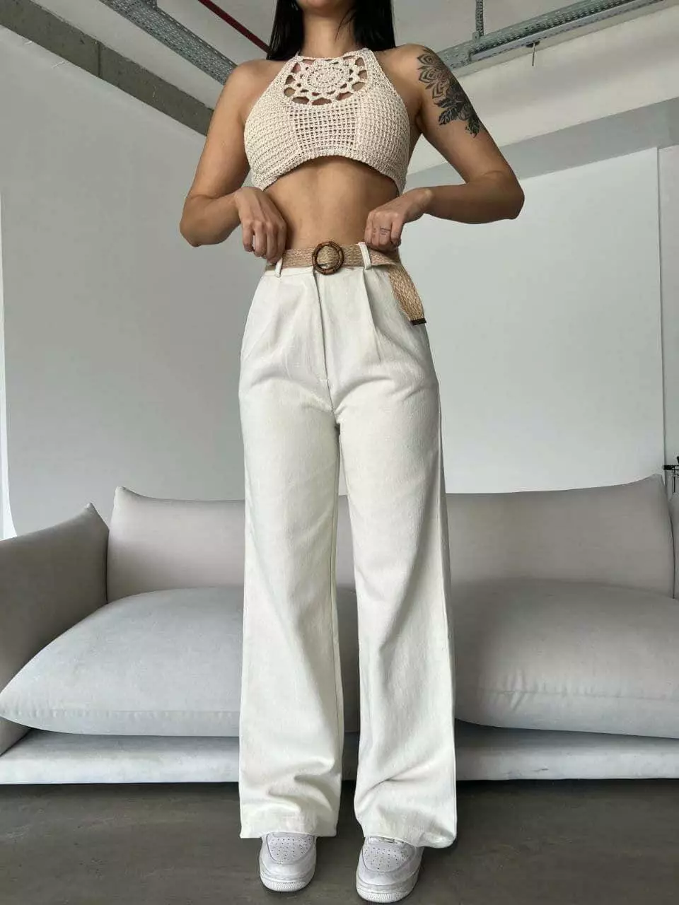 Жіночі штани з поясом (льон) 2102