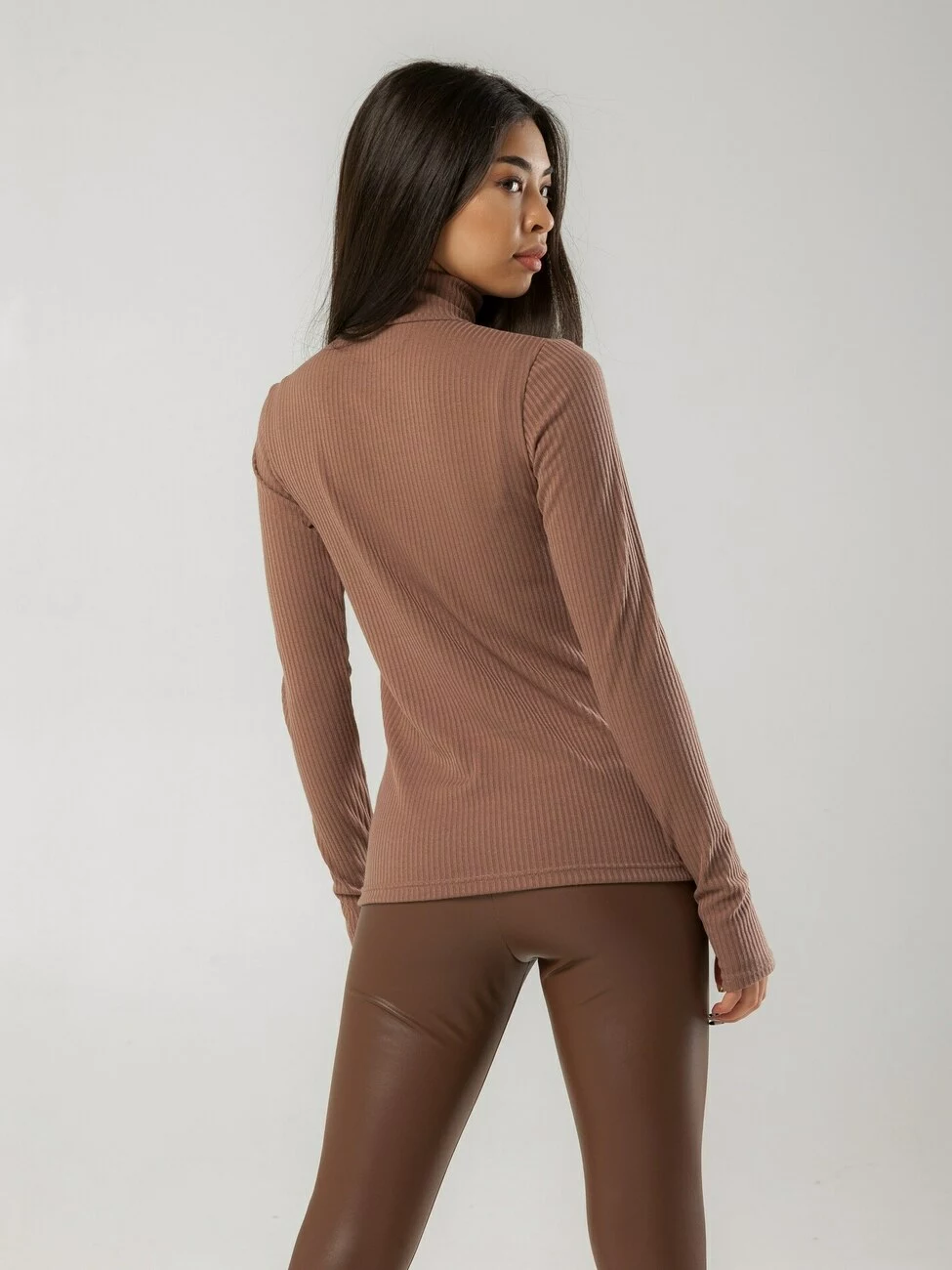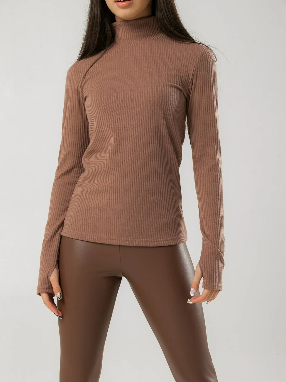 Жіночий гольф з високим горлом із фактурного матеріалу. Незамінна частина гардеробу в осінньо-весняний та зимовий сезон. Модель з довгим рукавом та вирізом для пальця.