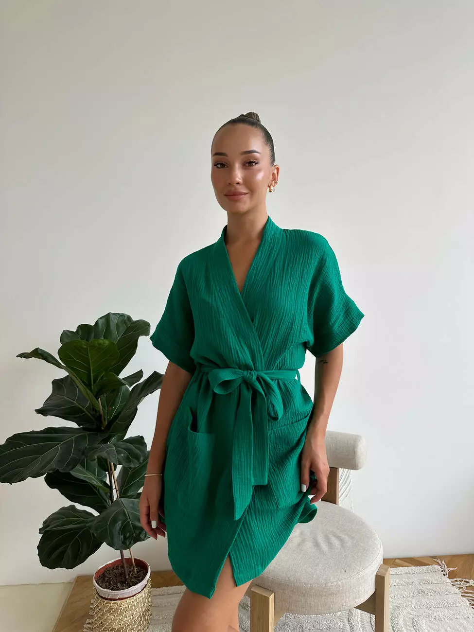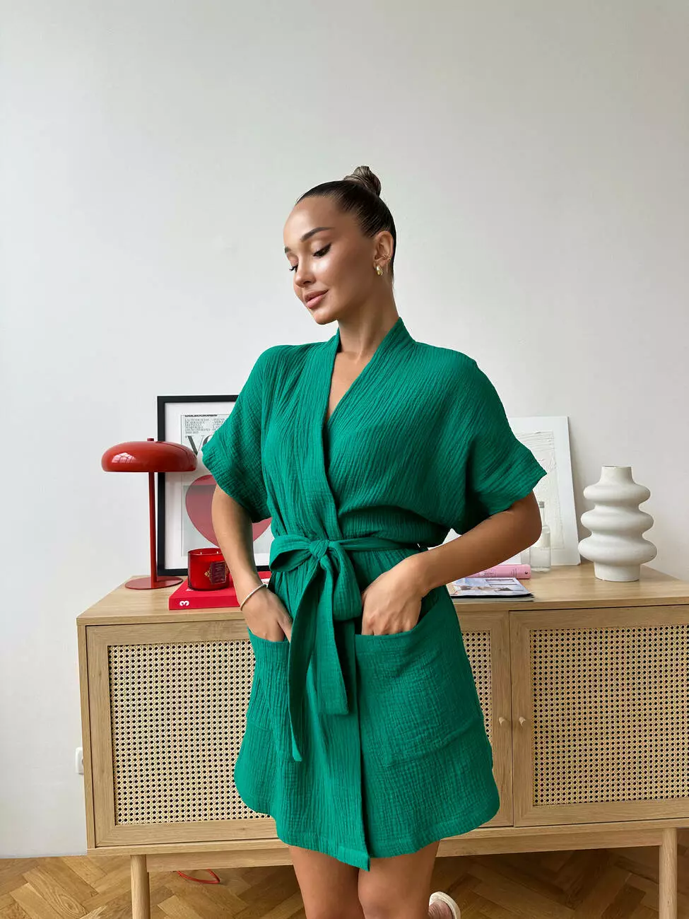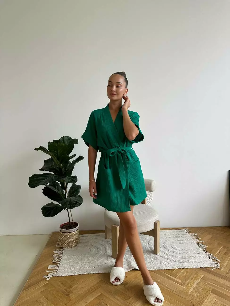 Обирай наш мусліновий халат у зеленому кольорі – і нехай кожен твій день буде наповнений енергією та стильними моментами!