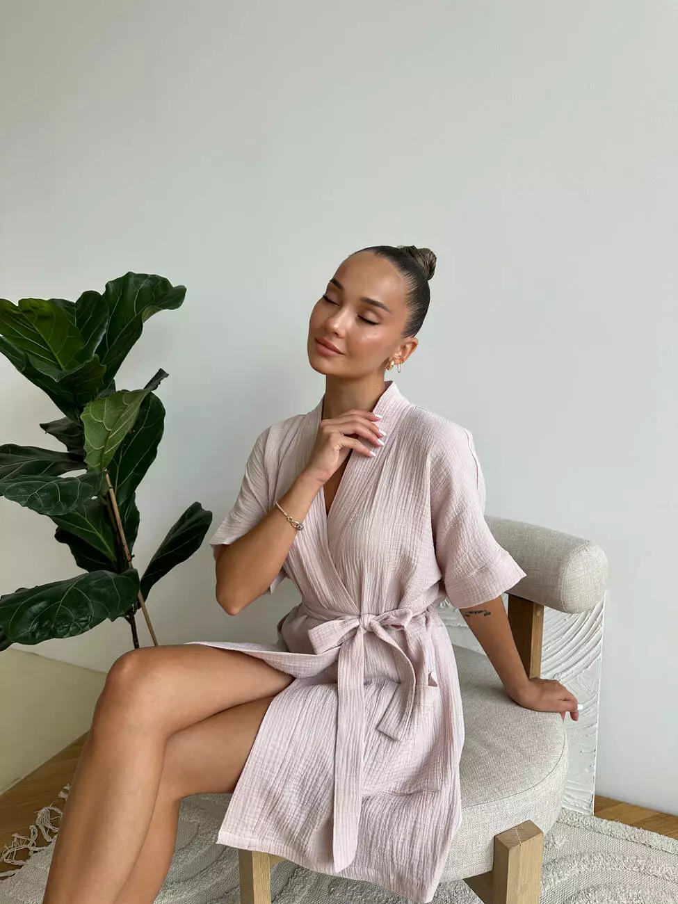 Обирай комфорт і стиль разом з нашим мусліновим халатом у ніжному пудровому кольорі! Тканина: 100% бавовна