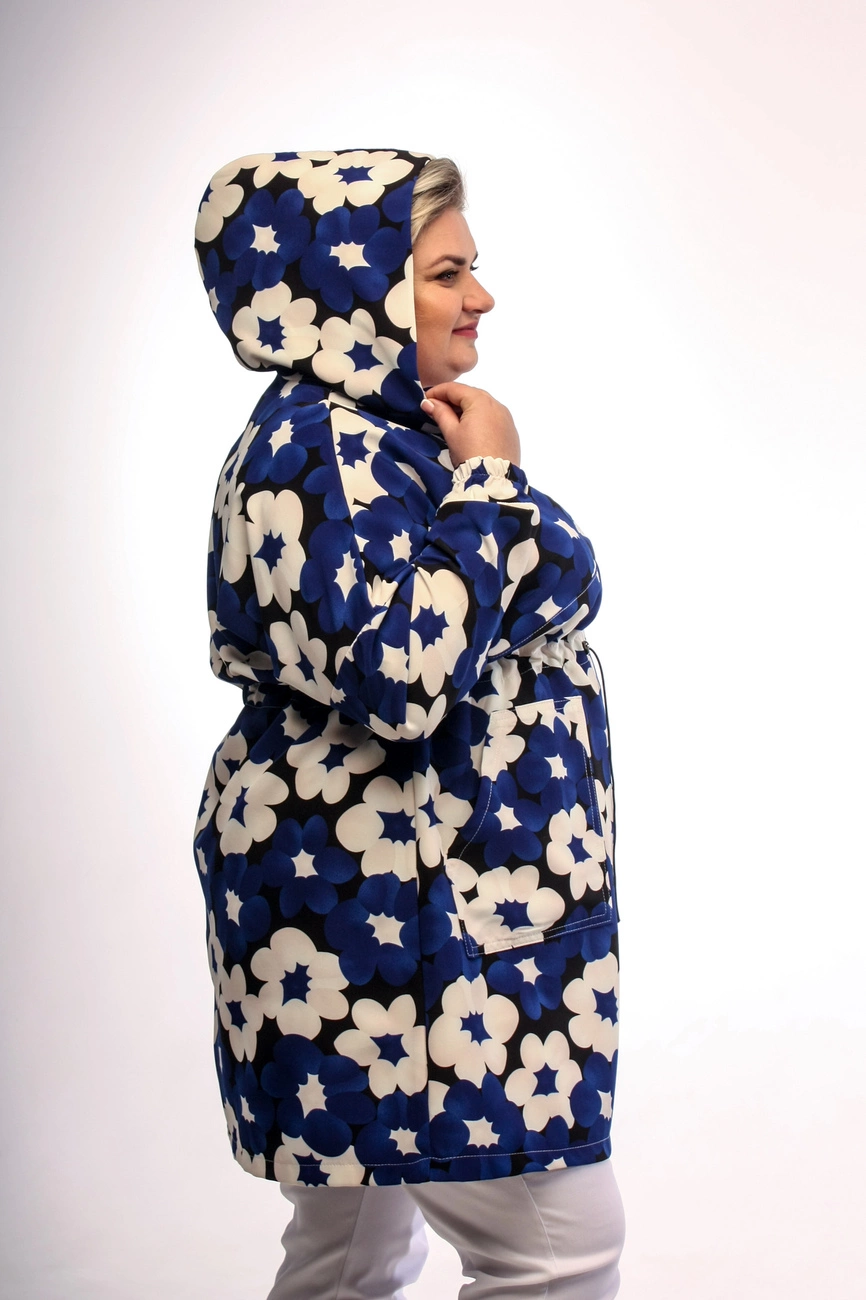 Вільний кардиган без підкладки зі спущеним плечем, талія фіксується втягненою гумкою в куліску, кишені накладні, капюшон, манжети на гумці. Тканина-костюмка-не тягнеться, не меніться, тримає форму. Вимірювання від шва до шва.
