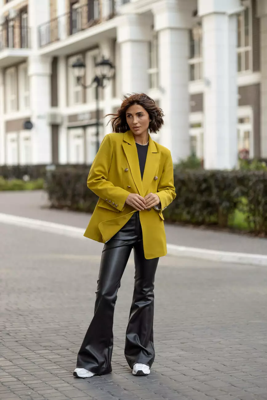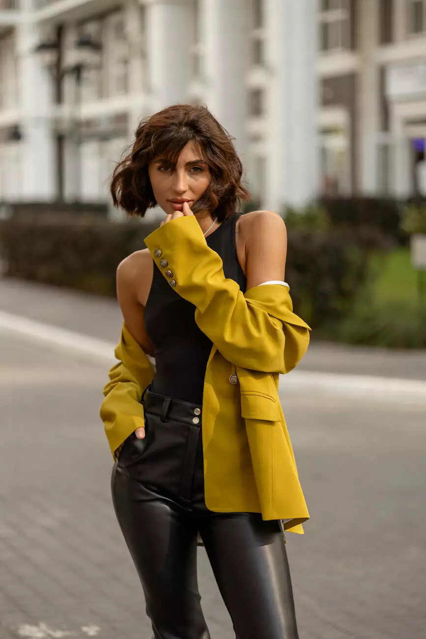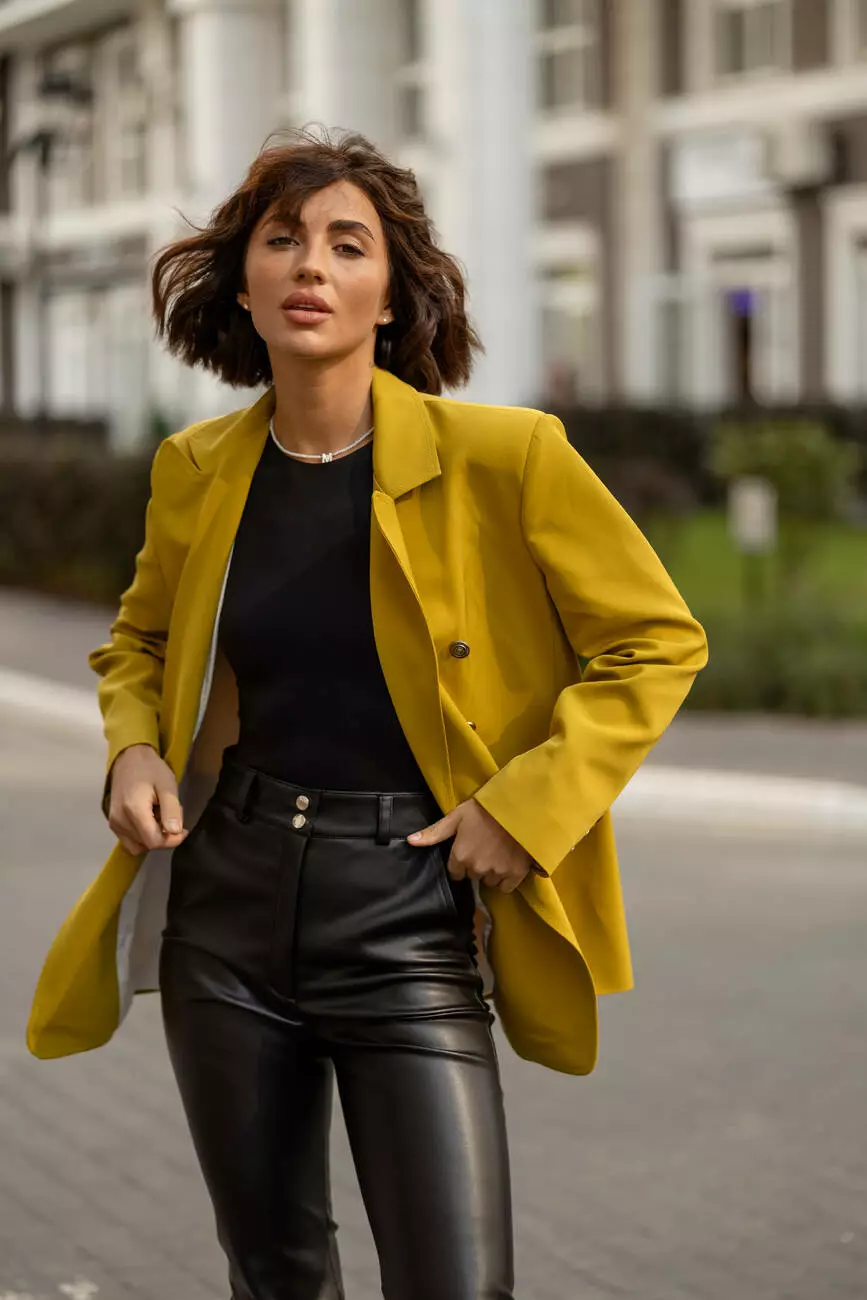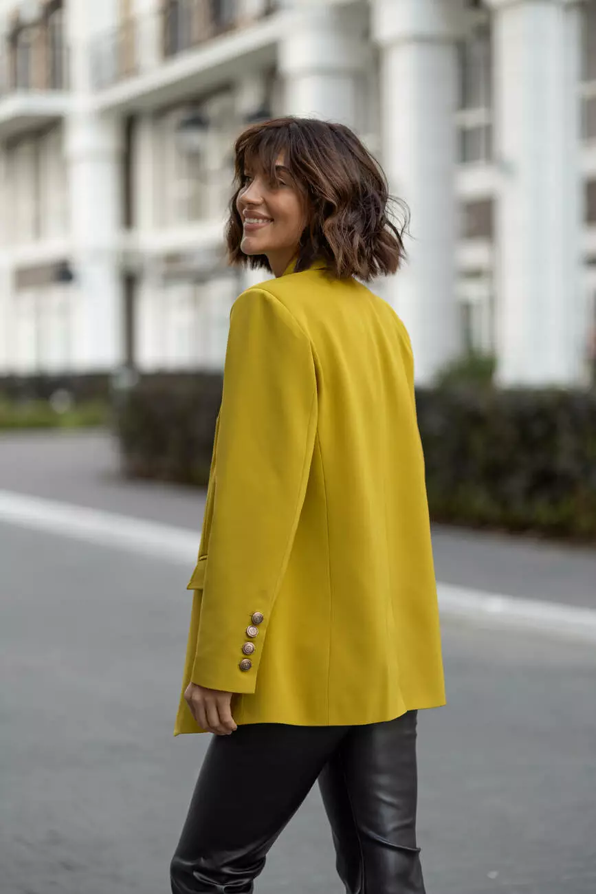 Стильна модель має напівприталений крій, комір з лацканами, має функціональні кишені та елегантні ґудзики додають жакету особливий шарм.