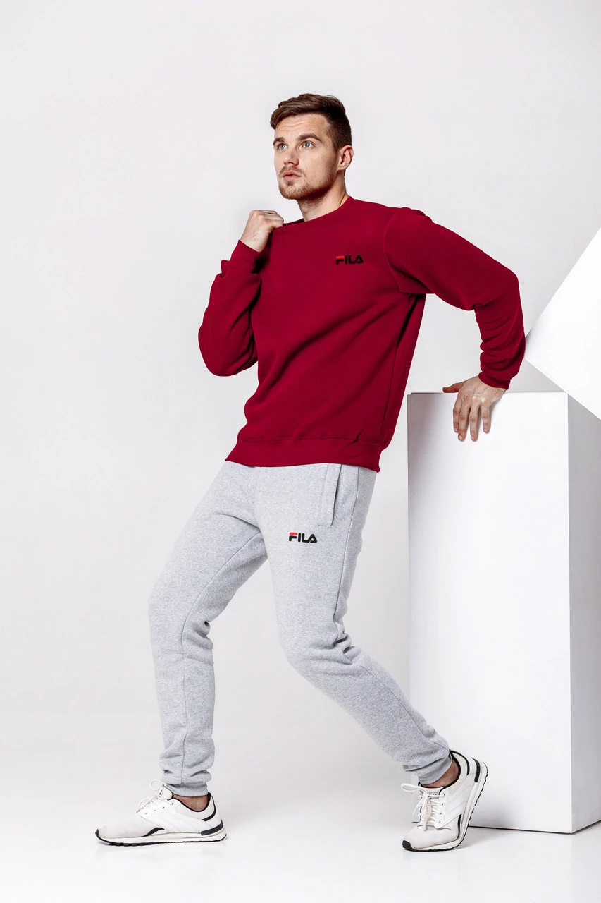 Зимний мужской спортивный костюм - бордовый теплый свитшот, серые теплые штаны (с лого любого бренда)