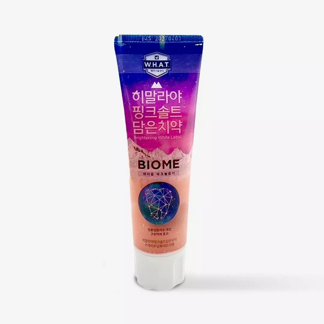 LG Himalaya Pink Salt Biome Toothpaste Brightening White Label - зубная паста, разработанная с использованием технологии BIOME и специального контроля качества W.H.A.T., которая способствует уменьшению воспаления дёсен и эффективно подавляет рост бактерий в полости рта в течение 12 часов. Формула с розовой гималайской солью и натуральными компонентами мягко очищает, освежает дыхание, помогает предотвратить кариес и поддерживает здоровье всей ротовой полости.