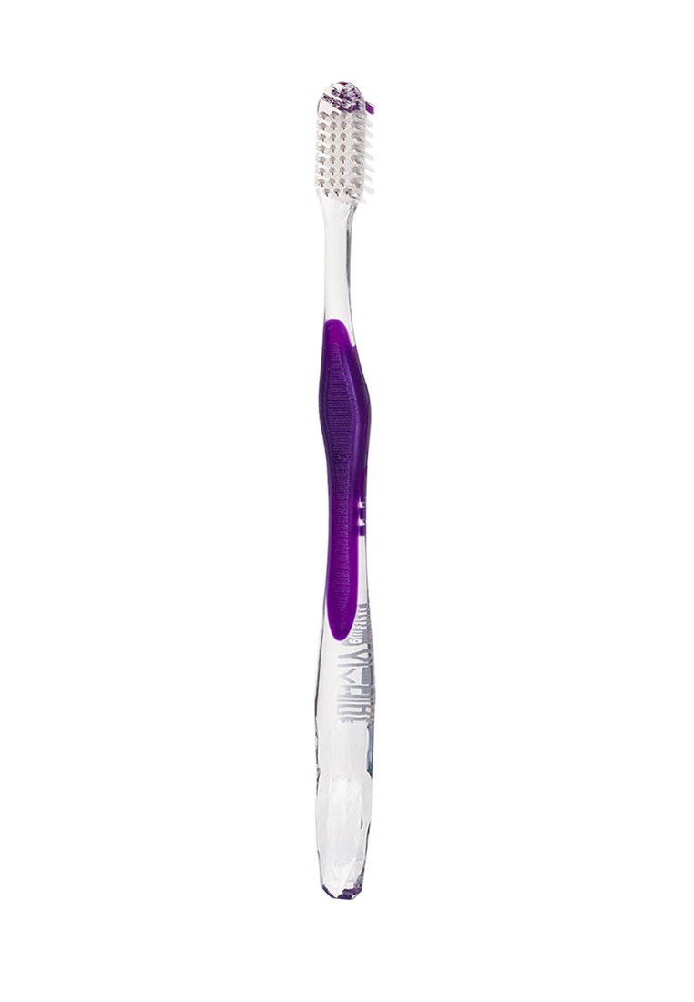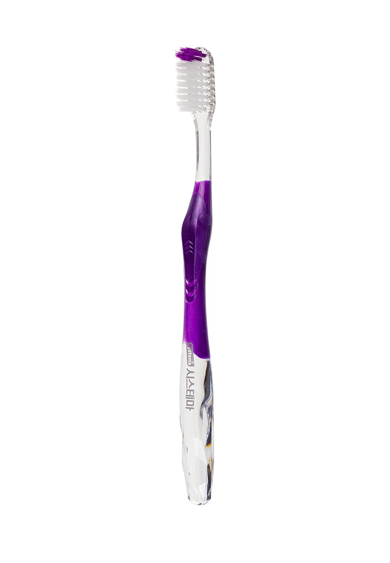 Щетинки Systema имеют вид ультратонких треугольных кончиков в отличие от простых щетинок, размеры которых достигают до 0,02 мм. Они способны проникать в околозубные пространства (расстояние 0,06 мм) и очищать от спрятавшегося там налeта. Ручка формы ладонного захвата, ставшей привычной и легкой в использовании, а именно ручка Standart для эффективной чистки труднодоступных мест и коренных зубов.