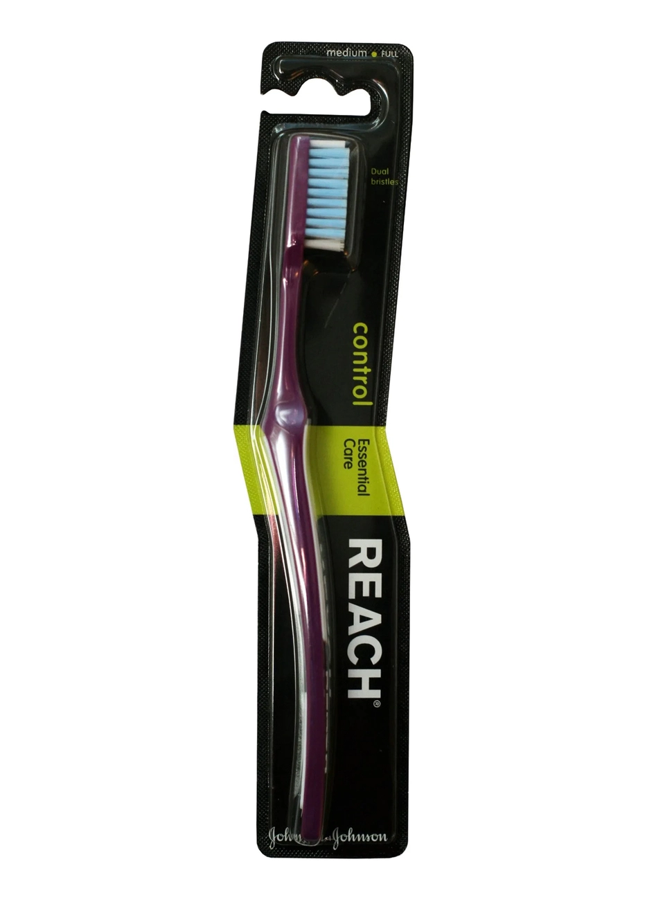 Зубная щетка Reach Control средняя. Прекрасный выбор для здоровых зубов и белоснежной улыбки - зубная щетка Reach Control от всемирно известного бренда Reach! Обладая длинными внешними щетинками, щетка обеспечивает бережную чистку и уход за деснами. Благодаря уникальному дизайну, шейка щетки слегка согнута под углом, что обеспечивает максимальный эффект во время чистки даже труднодоступных мест. Интересное решение в виде резиновых накладок на ручке, не даст ей выскальзывать из руки.