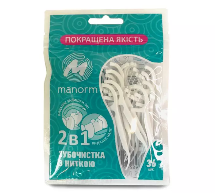 Зубочистка з освіжальною ниткою Manorm — засіб для щоденної гігієни ротової порожнини. Виріб поєднує функціональність зубочистки та нитки, забезпечуючи ефективне очищення міжзубних проміжків. Завдяки анатомічній формі, гнучкій конструкції та м’ятному еліксиру зубочистка легко ковзає, дарує відчуття свіжості та допомагає запобігти скупченню нальоту й залишків їжі в трудно доступних місцях.