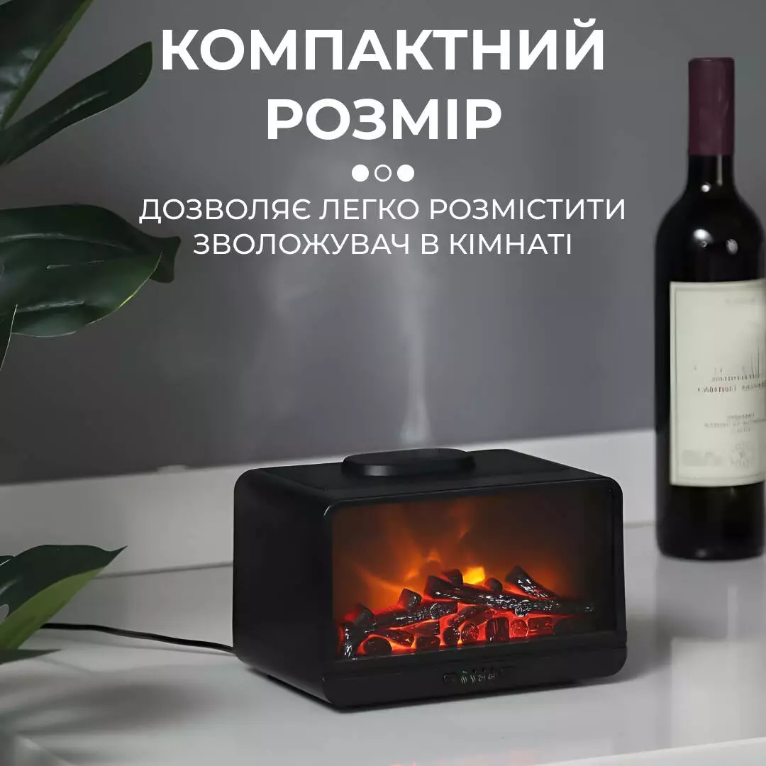 Зволожувач повітря Камін 300 мл з підсвічуванням, чорний