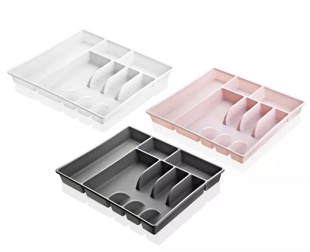 Лоток для зберігання столових приладів (43х42,5х4,5см) виготовлений з гіпоалергенного матеріалу - поліпропілен Турецького виробництва ТМ ЕMHOUSE. Матеріал стійко витримує вологу, механічні, хімічні впливи. Оформлений лоток в різних кольорах, підійде під будь-який інтер'єр. Лотки для столових приладів дозволяють максимально якісно використовувати внутрішній простір невисоких кухонних ящиків. Лоток розділений на 7 секцій, дуже зручно сортувати столові прибори. Гладка поверхня легко миється. Можна використовувати в посудомийних машинах. Товар сертифікований міжнародним стандартом якості для контакту з харчовими продуктами ISO 9001. Термін придатності - необмежений.