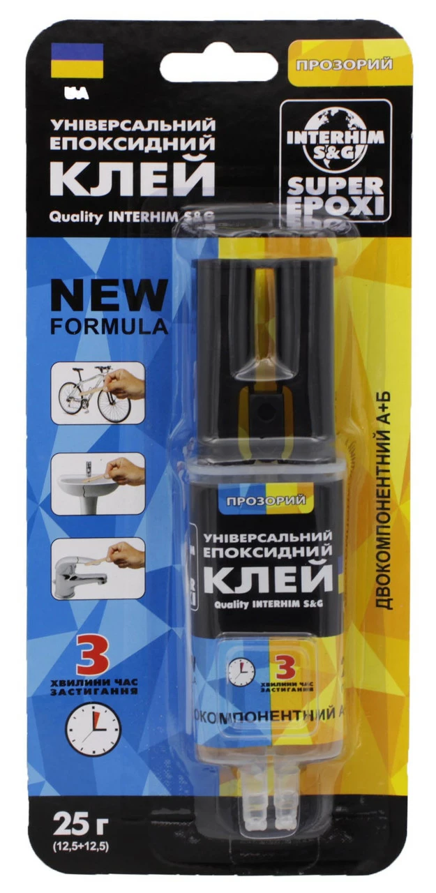 Пропонуємо купити універсальний прозорий епоксидний клей "Super Epoxi шприц двокомпонентний", від виробника "Interhim". Прозорий, професійний, супер міцний двокомпонентний епоксидний клей з універсальним спектром дії, характеризується дуже високою адгезією.