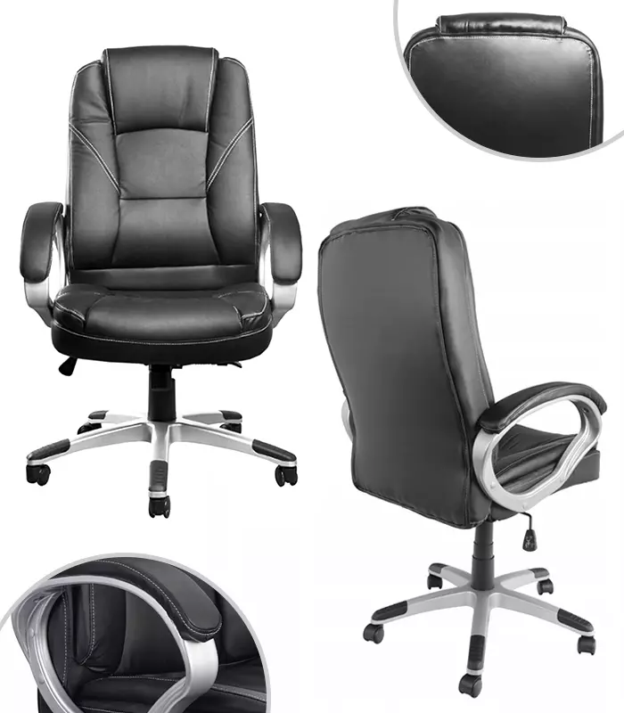 Ергономічне комп'ютерне крісло, офісне з еко-шкіри, Польща (Black)