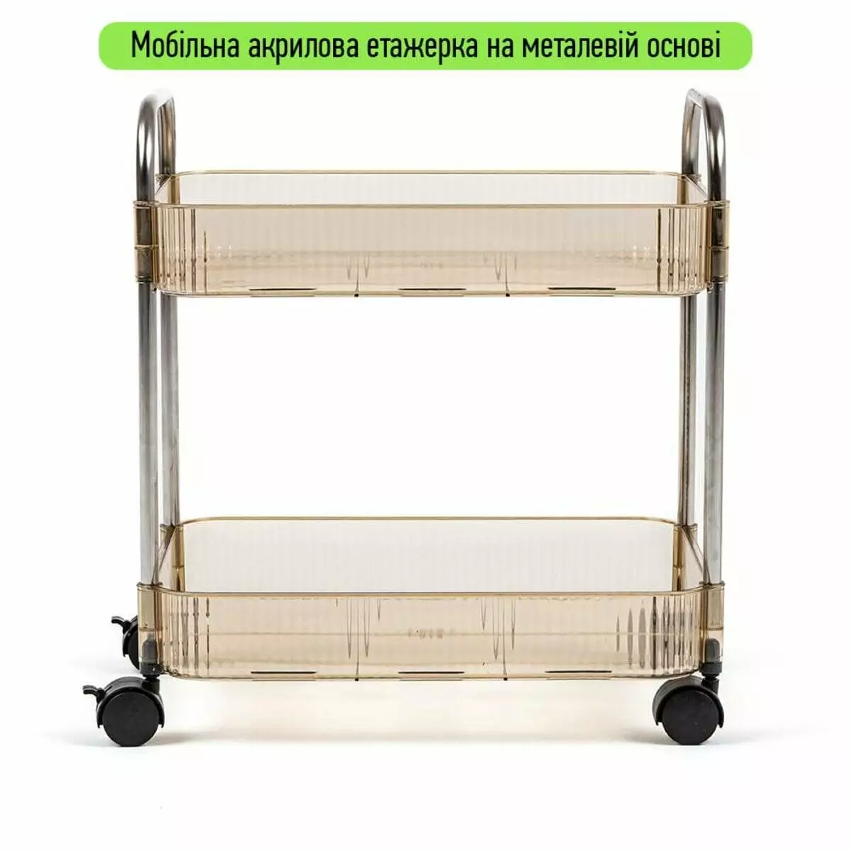 Мобільні акрилові етажерки на металевій