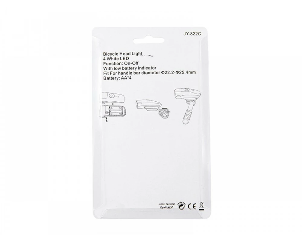 Фара передня JING YI JY-822С чорна з кріпленням на кермо