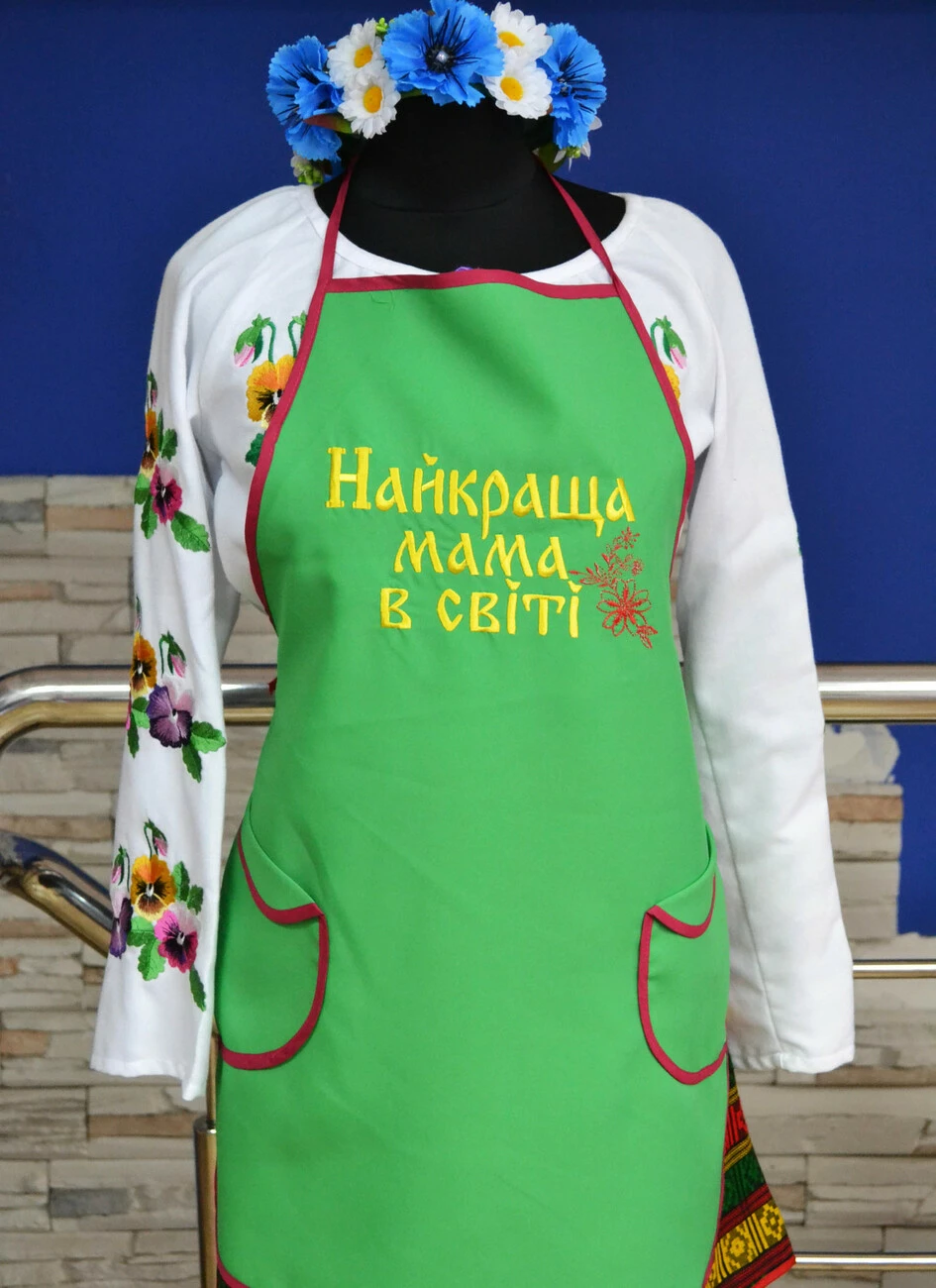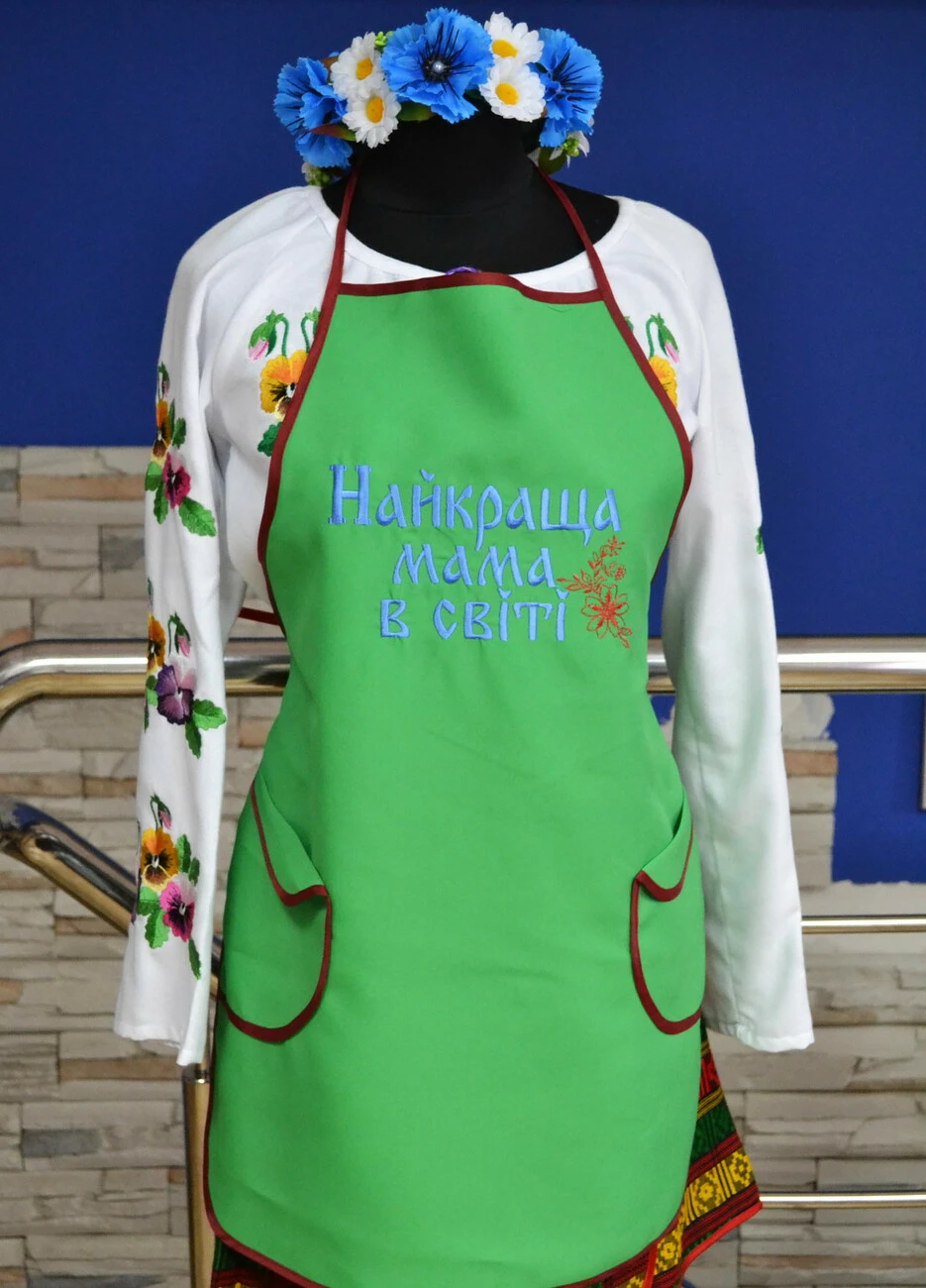 Вишитий фартух з оригінальним надписом «Найкраща мама в світі» від гуртівні Leosouvenir буде чудовим подарунком для Ваших близьких.