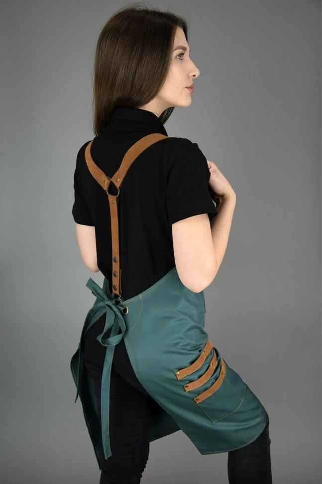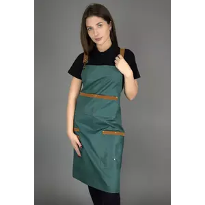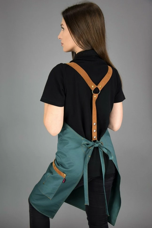 Фартук с нагрудником поварской/официантский зелёный "Кожа"