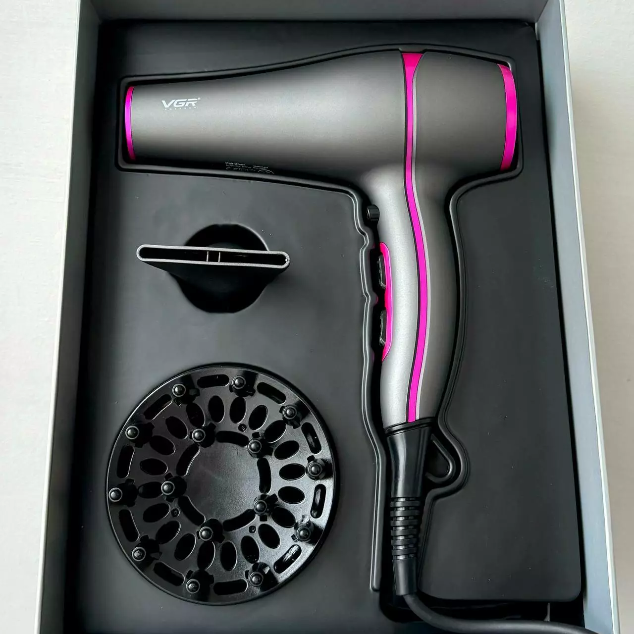 Фен для волос VGR V-402 с 2 насадками - это надежное и мощное устройство, предназначенное для ежедневного использования. Благодаря продуманной конструкции и высокой мощности, он позволяет не только быстро высушить волосы, но и создать разнообразные укладки. Модель оснащена как горячим, так и холодным воздушным потоком, что делает ее идеальной для ухода за ослабленными и поврежденными волосами.