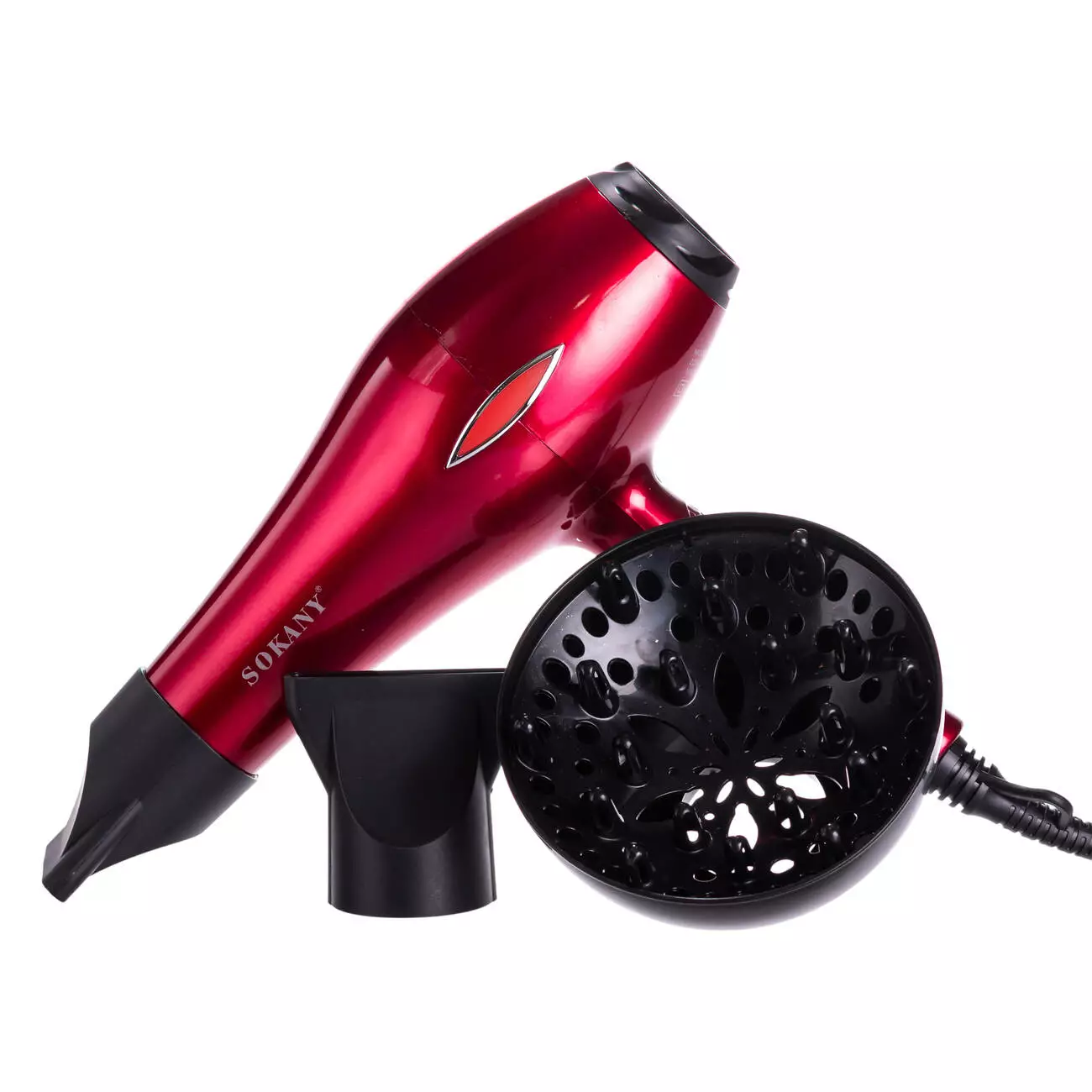 Фен для волосся SOKANY SK-2215 - відмінний вибір для швидкого сушіння волосся та досягнення салонного ефекту укладання в домашніх умовах. У комплекті є дифузор і 2 концентратори, що дозволяє створювати ідеальні завитки на волоссі, витягнути і пригладити кожне пасмо, або створити прикореневий об'єм. Пристрій оснащений генератором негативних іонів, що дозволяє уникнути пересушування локонів та електризації локонів після сушіння.