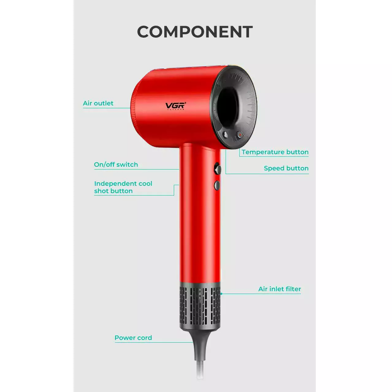 Фен професійний VGR V-445 RED, 3 рівні обдування, 4 рівні температури, 1600 Вт, 110000 RPM