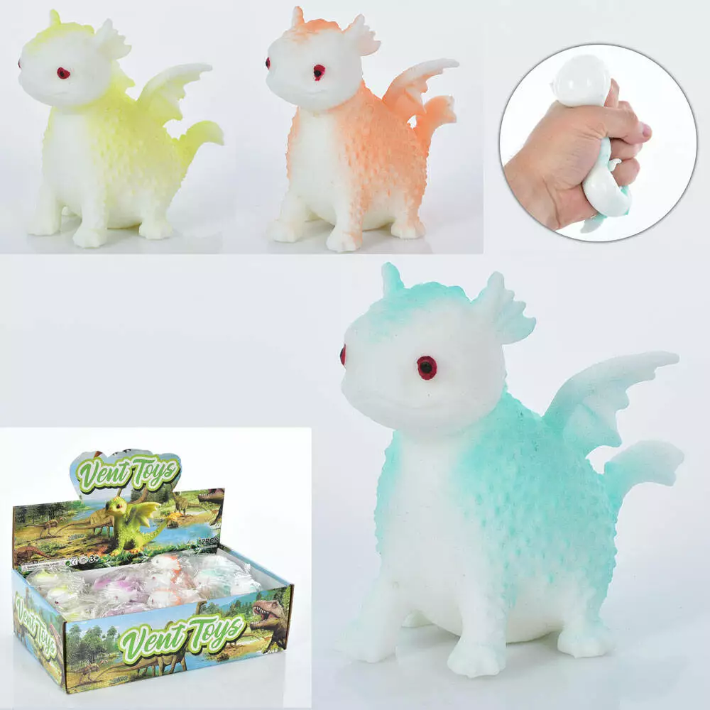 Фотография 1 товарной позиции интернет-магазина детских игрушек www.smarttoys.com.ua Фігурка SQ-29 дракон, антистрес, 4 кольори, 12 шт. в диспл., 29-17,5-9,5 см.