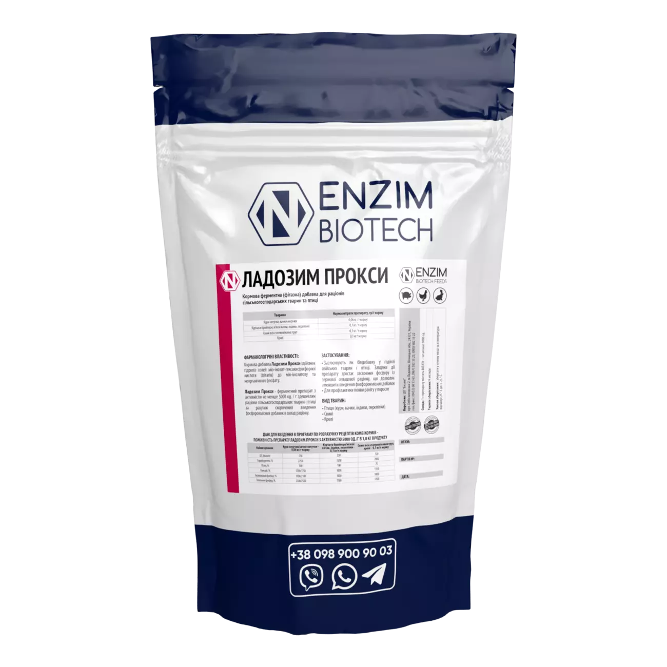 Фитаза ENZIM - фермент для расщепления нерастворимых фитатов. Переводит фитаты и фосфор в доступную для усваивания животными и птицей форму. Улучшает доступность фосфора, кальция, аминокислот, микроэлементов из солей фитиновой кислоты.